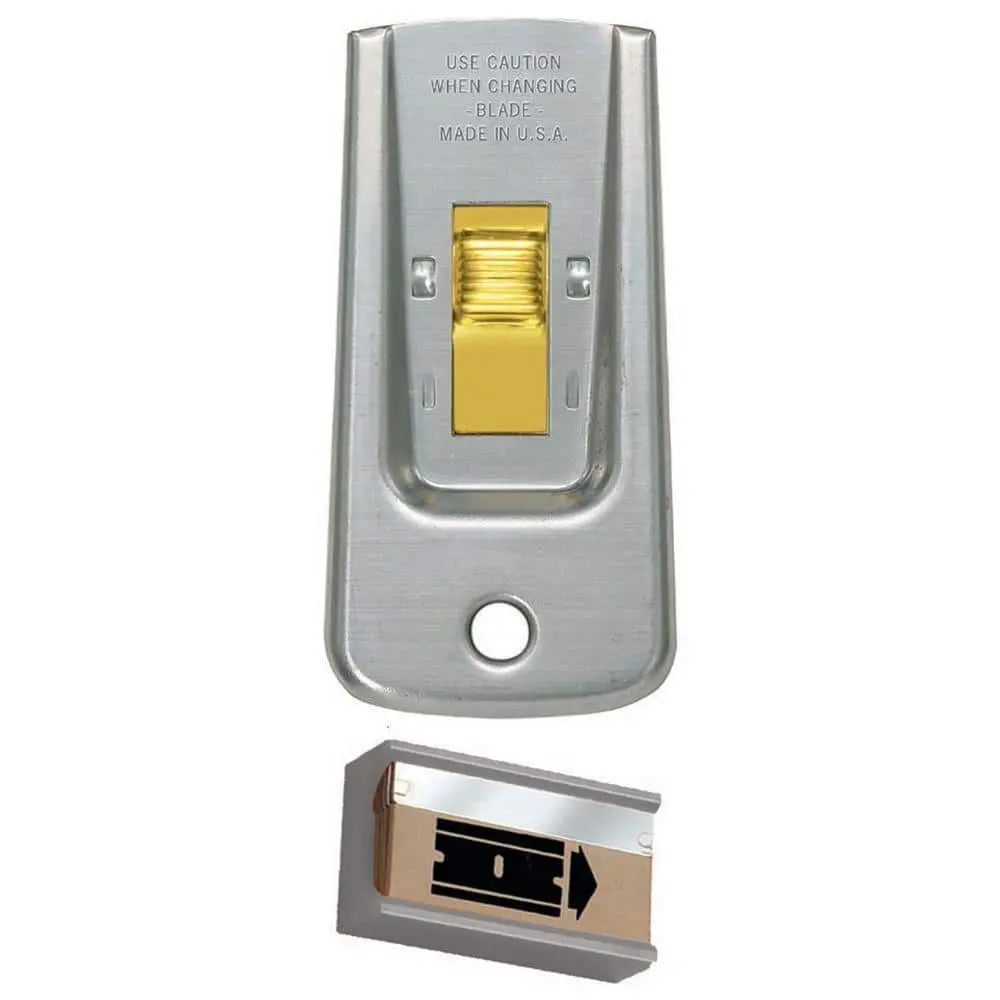 The Anvil Safety Glass Scraper comes with 5 replacement blades, making it a reliable tool for removing paint, stickers, and adhesives from glass surfaces. Designed for durability, it features a compact and ergonomic design for comfortable handling. A built-in blade storage compartment ensures easy access to extra blades, while the protective cover enhances safety when not in use. This scraper is a must-have for efficient and precise cleaning tasks