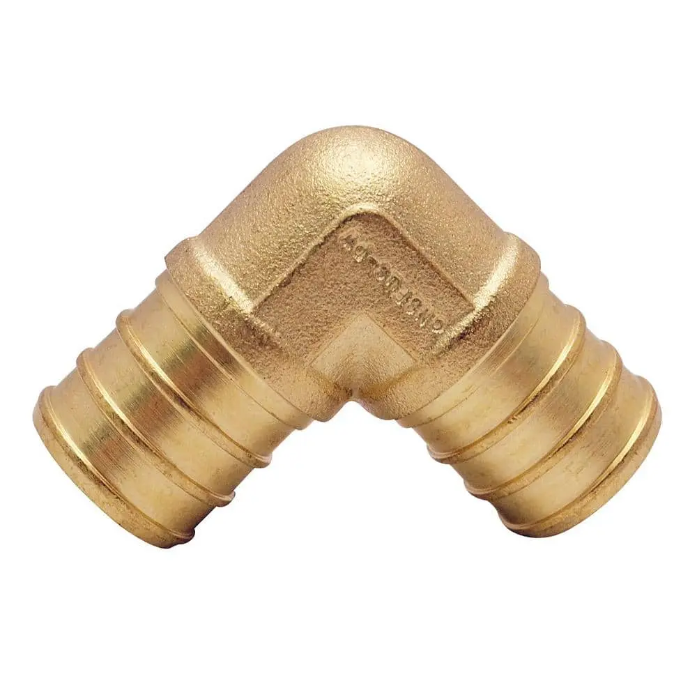The ApolloPEX 3/4 in. Brass PEX Barb 90-Degree Elbow offers easy installation and is a key component of the most cost-effective potable water piping systems. It can also be integrated into hydronic heating systems. The elbow can be securely fastened using copper crimps, stainless steel pinch clamps, or stainless steel crimp sleeves (sold separately). The ApolloPEX system includes a full range of brass fittings, poly alloy fittings, manifolds, valves, fasteners, tools, and tubing designed for both simple and complex water delivery systems.