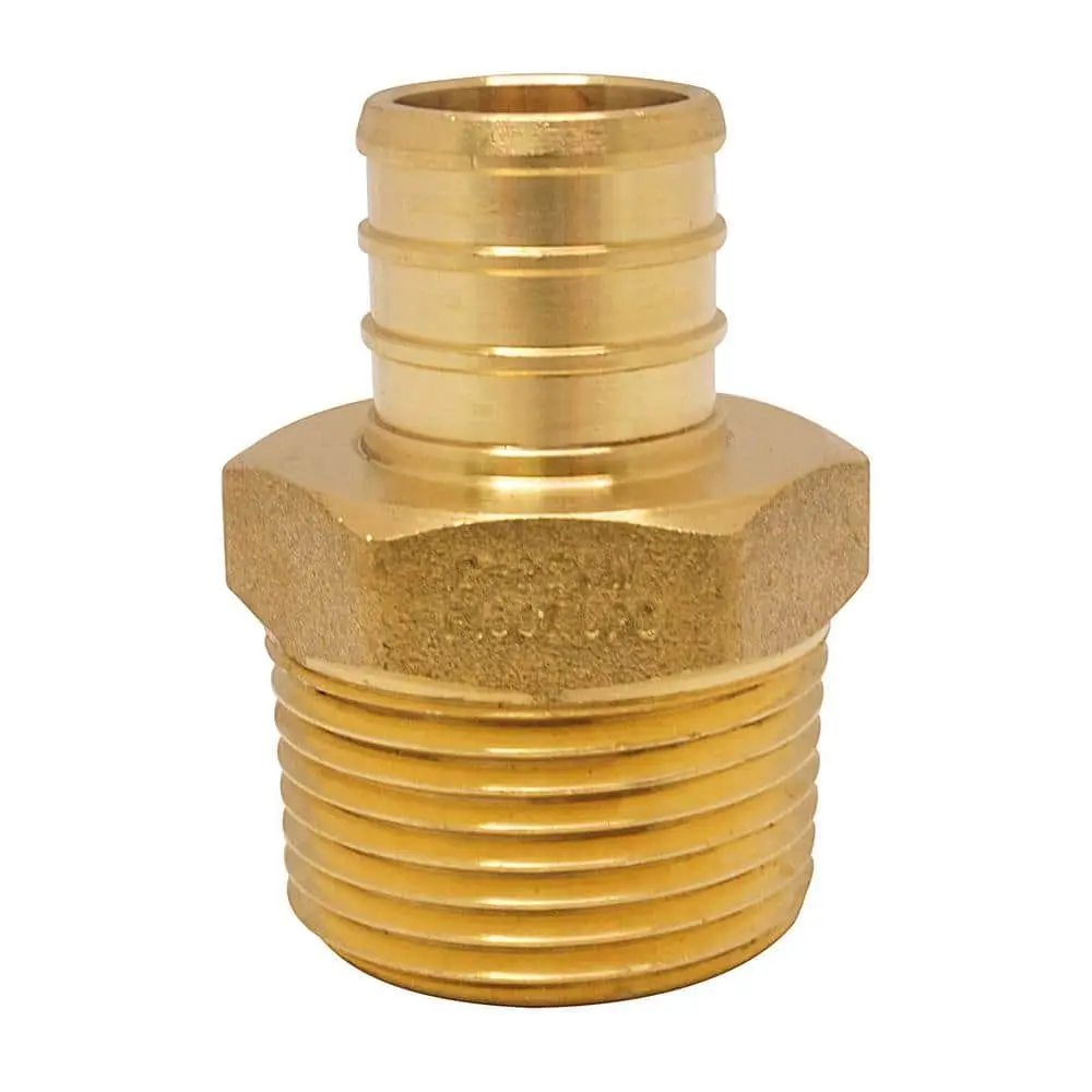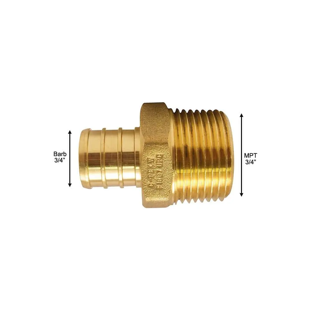 The ApolloPEX 3/4 in. Brass PEX Barb x 3/4 in. Male Pipe Thread Adapter is easy to install and ideal for potable water piping systems. ApolloPEX barb fittings provide a cost-effective solution for both residential and hydronic heating systems. These adapters can be secured with copper crimps, stainless steel pinch clamps, or crimp sleeves (sold separately). The ApolloPEX system includes a full range of brass fittings, poly alloy fittings, manifolds, valves, and tools designed for efficient water delivery.