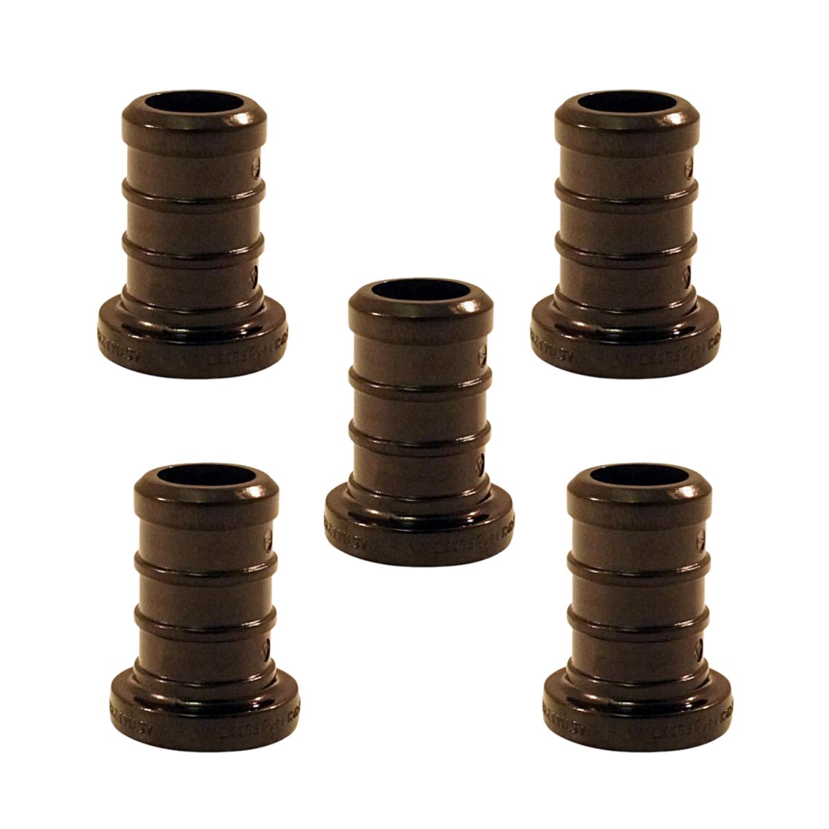 The Apollo PEX 1/2 in. Plastic PEX Barb Plug (5-Pack) is easy to install and serves as a cost-effective solution for capping PEX tubing. Apollo PEX poly alloy fittings offer a reliable alternative to brass, particularly in areas where water quality may negatively affect brass materials. These barb fittings are crucial components of affordable drinking water piping systems and can also be used in hydronic heating systems. The plugs can be securely fastened using copper crimps, stainless steel pinch clamps, or stainless steel crimp sleeves (all sold separately). The Apollo PEX system provides a comprehensive piping solution including brass fittings, poly alloy fittings, manifolds, valves, fasteners, tools, and tubing, suitable for various water delivery systems, whether simple or complex.