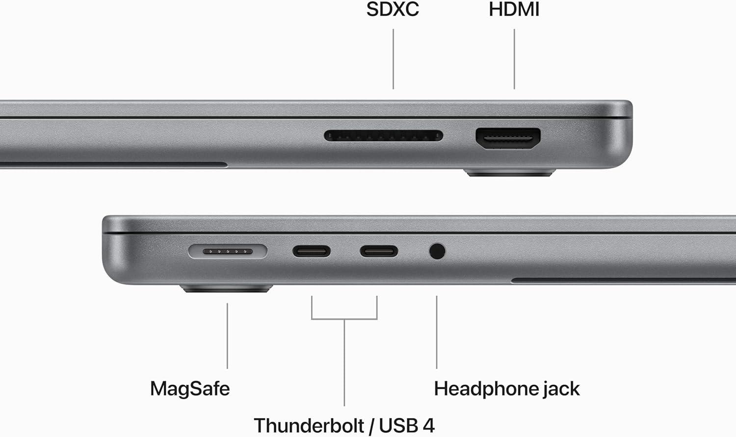M3 POWER: With an 8-core CPU and 10-core GPU, the Apple M3 chip handles multitasking and pro projects like photo and 4K video editing with ease. UP TO 22 HOURS BATTERY LIFE: Enjoy all-day performance with Apple silicons power efficiency, whether on battery or plugged in. (Battery life varies; visit apple.com/batteries for details.) BRILLIANT DISPLAY: The 14.2-inch Liquid Retina XDR display offers Extreme Dynamic Range, over 1000 nits brightness for HDR, and up to 600 nits for SDR, with pro reference modes for top-quality work on the go. (Screen measures 14.2 inches diagonally; viewable area is slightly less.) FULLY COMPATIBLE: Run pro apps like Adobe Creative Cloud, Apple Xcode, and Microsoft 365, plus iPhone and iPad apps, with macOS enhancing performance and personalization. (Available on the App Store.) APPLECARE+ COVERAGE: Begins on purchase date, offering 24/7 priority access to Apple experts, hardware coverage for your Mac and accessories, and software support for macOS, Apple apps, iCloud, and more.