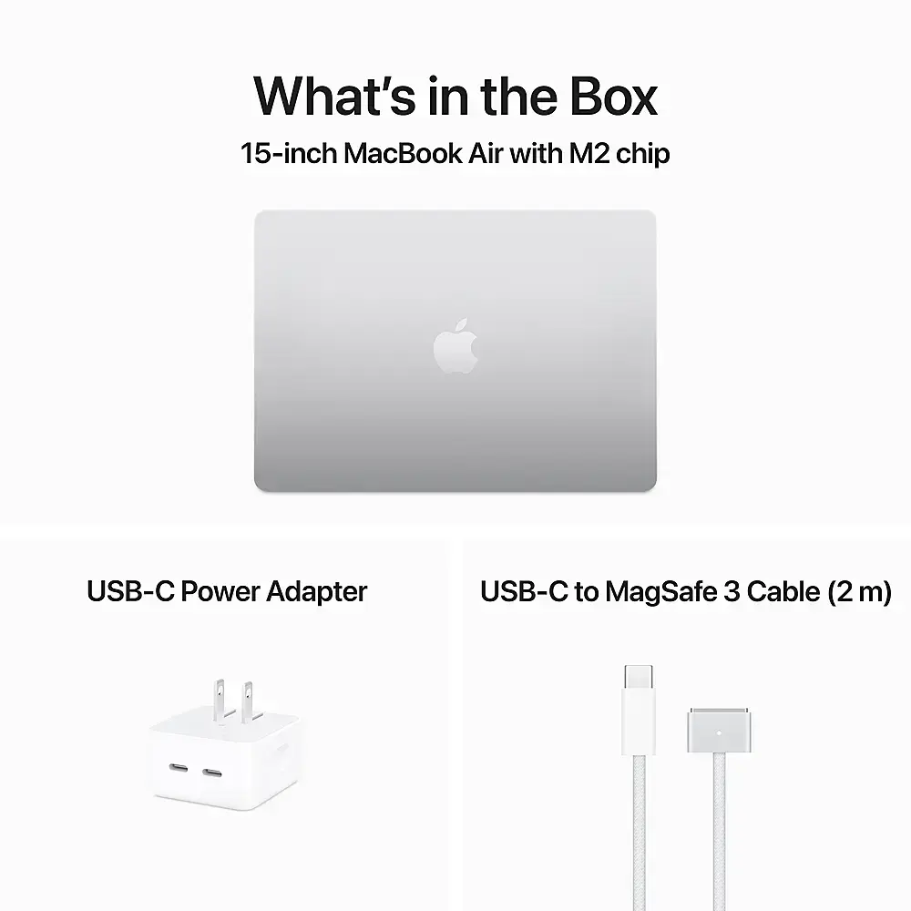 The Apple Geek Squad Certified Refurbished MacBook Air 15" Laptop combines exceptional performance with a sleek, portable design. Powered by the Apple M2 chip, it offers enhanced performance and efficiency for all your tasks. With 8GB memory, multitasking is smooth, ensuring a fast and responsive experience. The 512GB SSD provides quick access to your files and ample storage space. The 15-inch Retina display offers sharp, vibrant visuals, perfect for both work and entertainment. Finished in Silver, it boasts a professional and elegant look. As a Geek Squad Certified Refurbished model, it guarantees quality and reliability, making it an excellent choice for those who need power and portability in a stylish package