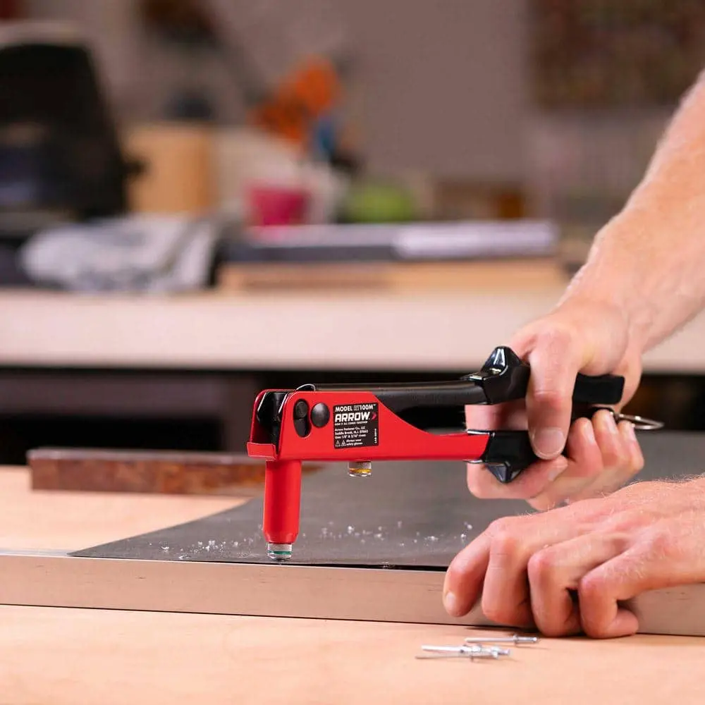 The Arrow Economy Rivet Tool is an essential tool for general fastening tasks. Designed with durable construction, it ensures reliable, long-lasting performance. This tool is compatible with standard 1/8 in., 5/32 in., and 3/16 in. rivets, making it versatile for a variety of projects. Its ergonomic grip provides comfort, allowing for extended use without fatigue. Perfect for light-duty applications, the tool is ideal for crafts, repairs, and home improvement projects