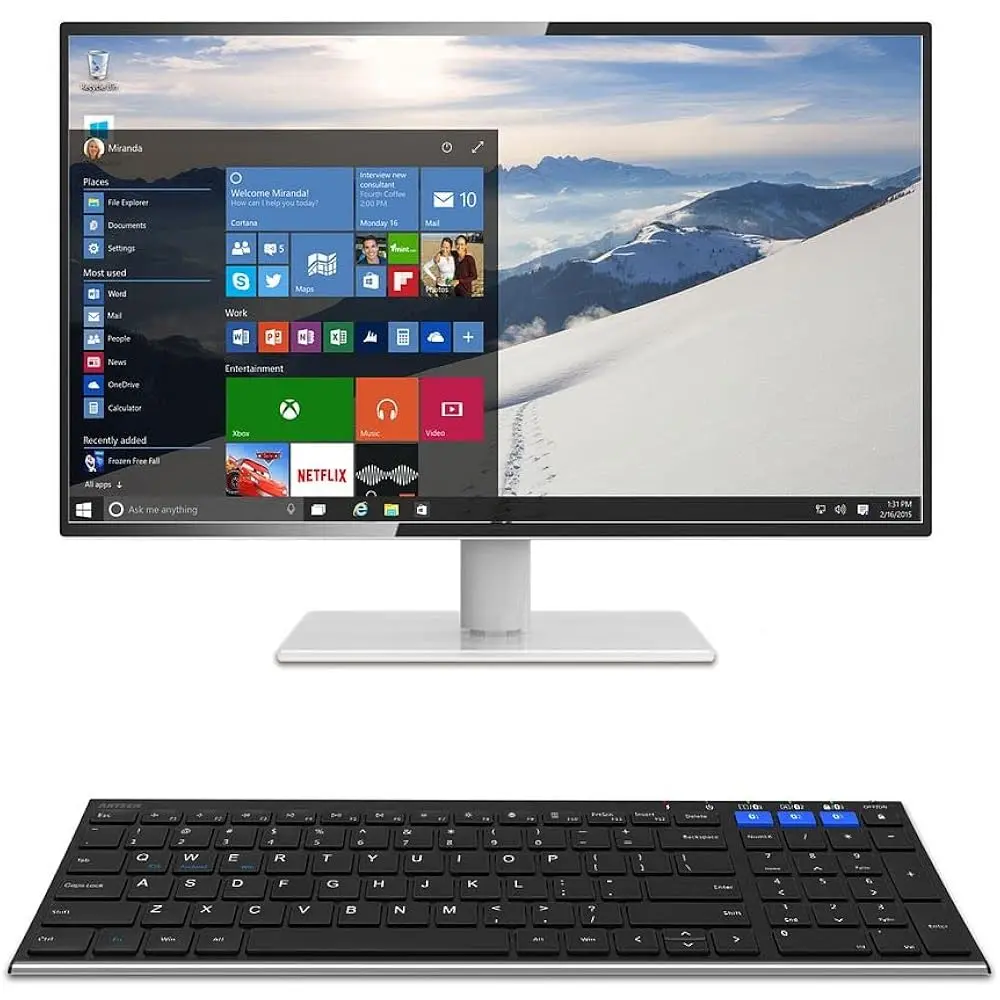 This full-size Bluetooth keyboard is ideal for those who need a versatile, multi-device solution with a long-lasting battery and ergonomic design.