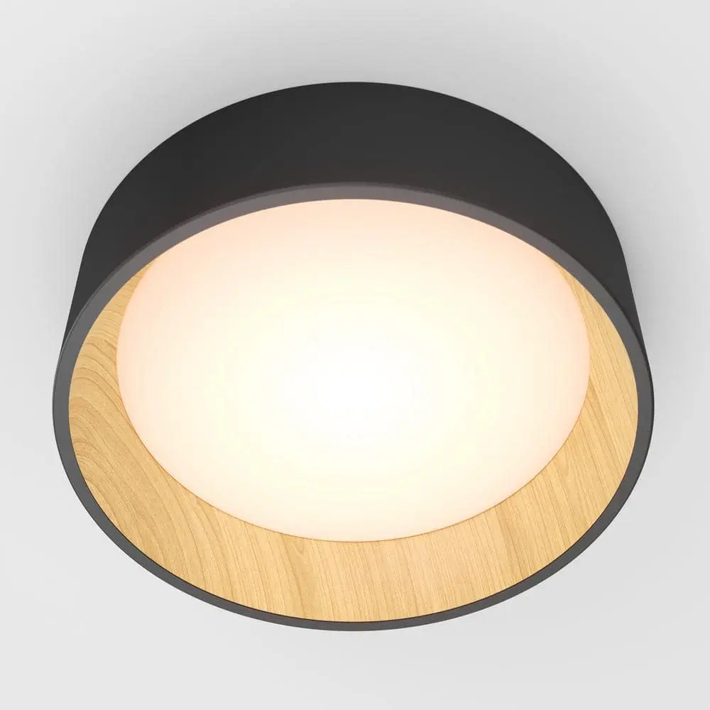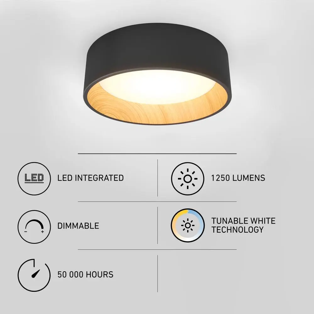 Make a statement with your lighting! Ideal for entryways or versatile spaces, the Alton LED ceiling light features a sleek matte black exterior complemented by a warm, painted woodgrain interior. Effortlessly adjust the color temperature from cool white to warm to create the perfect ambiance. With its integrated LED, there's no need for bulbs, and installation is simple. This high-quality fixture is compatible with most LED dimmers and boasts an impressive 50,000-hour lifespan.