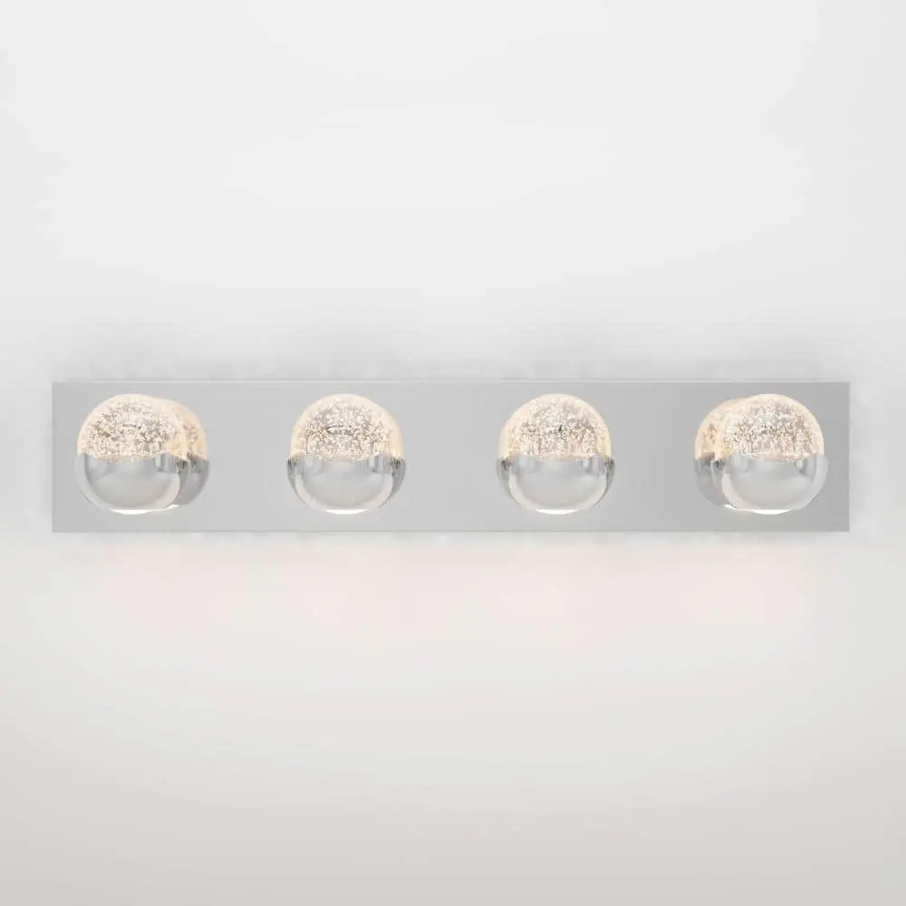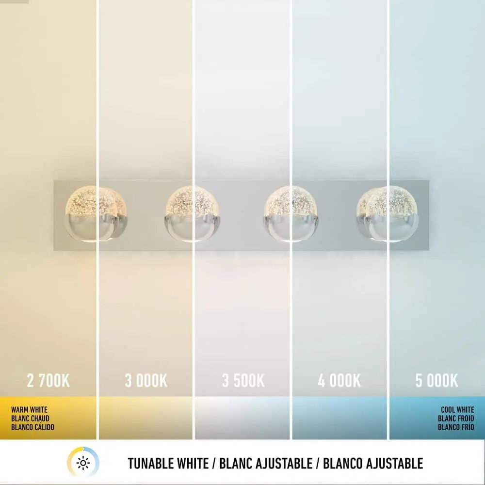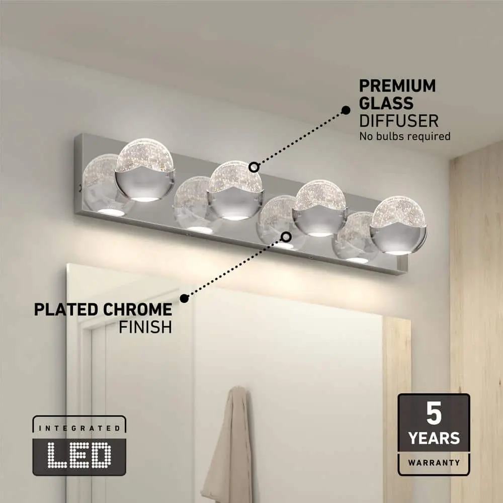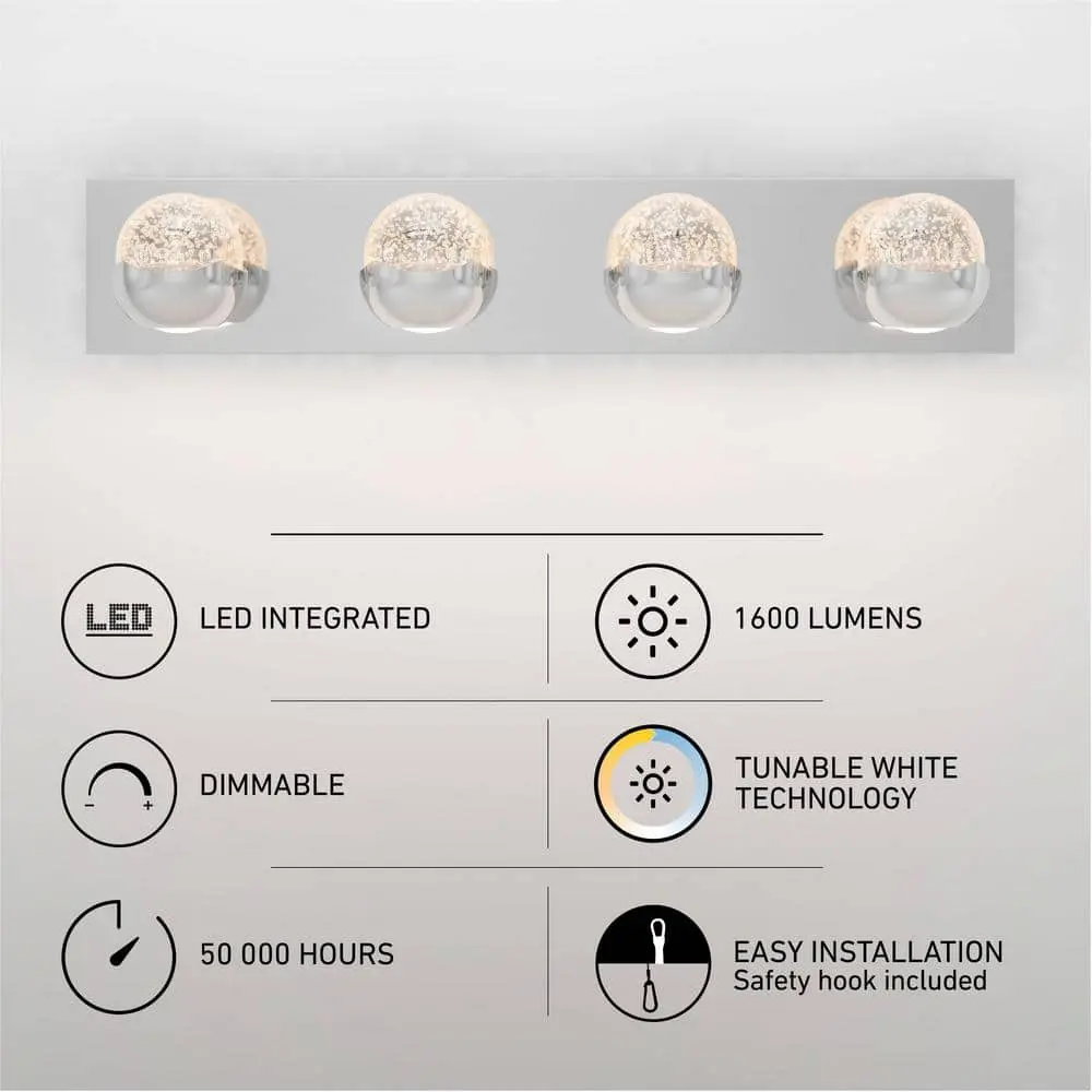 Enhance your home with the striking Oracle 4-Light Vanity 5CCT. Its bold contemporary design creates a captivating focal point, featuring four chrome-finish lights that resemble elegant floating bubbles. This unique vanity fixture offers both high illumination and long-lasting performance, making it a standout addition to any space. Designed with integrated LED technology, it ensures energy efficiency while providing adjustable color temperatures to suit your ambiance. Elevate your décor with a modern, sophisticated touch.