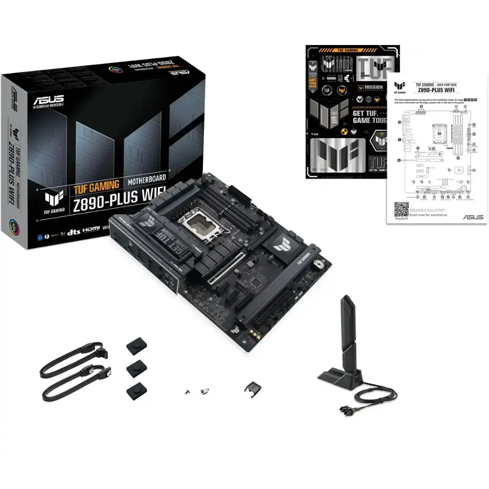 The TUF GAMING Z890-PRO WIFI ATX motherboard is optimized for advanced AI PC setups, featuring robust 16+1+2+1 80A DrMOS power stages for reliable power delivery. It supports DDR5 memory slots and PCIe 5.0 for lightning-fast performance. The motherboard offers versatile connectivity with DisplayPort, HDMI, two Thunderbolt 4 USB Type-C ports, and a front panel USB 20Gbps Type-C port.