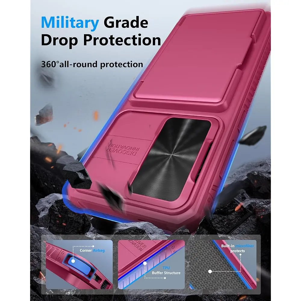 The innovative sliding camera cover provides robust lens protection, shielding it from scratches, dust, and oil while maintaining privacy. Crafted with rugged silicone and military-grade materials, the case features reinforced corners, raised edges, and a shock-absorbing design to safeguard your phone against drops, impacts, and daily wear.