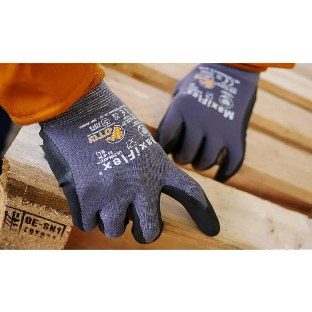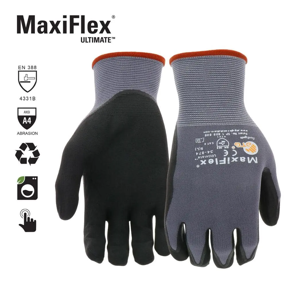 The MAXIFLEX Ultimate glove is engineered for exceptional breathability and precision handling, making it a top choice for professional use in both wet and dry environments. Its micro-foam nitrile coating ensures reliable grip and abrasion resistance, even when exposed to light oils. The glove's ergonomic design promotes all-day comfort and superior performance.