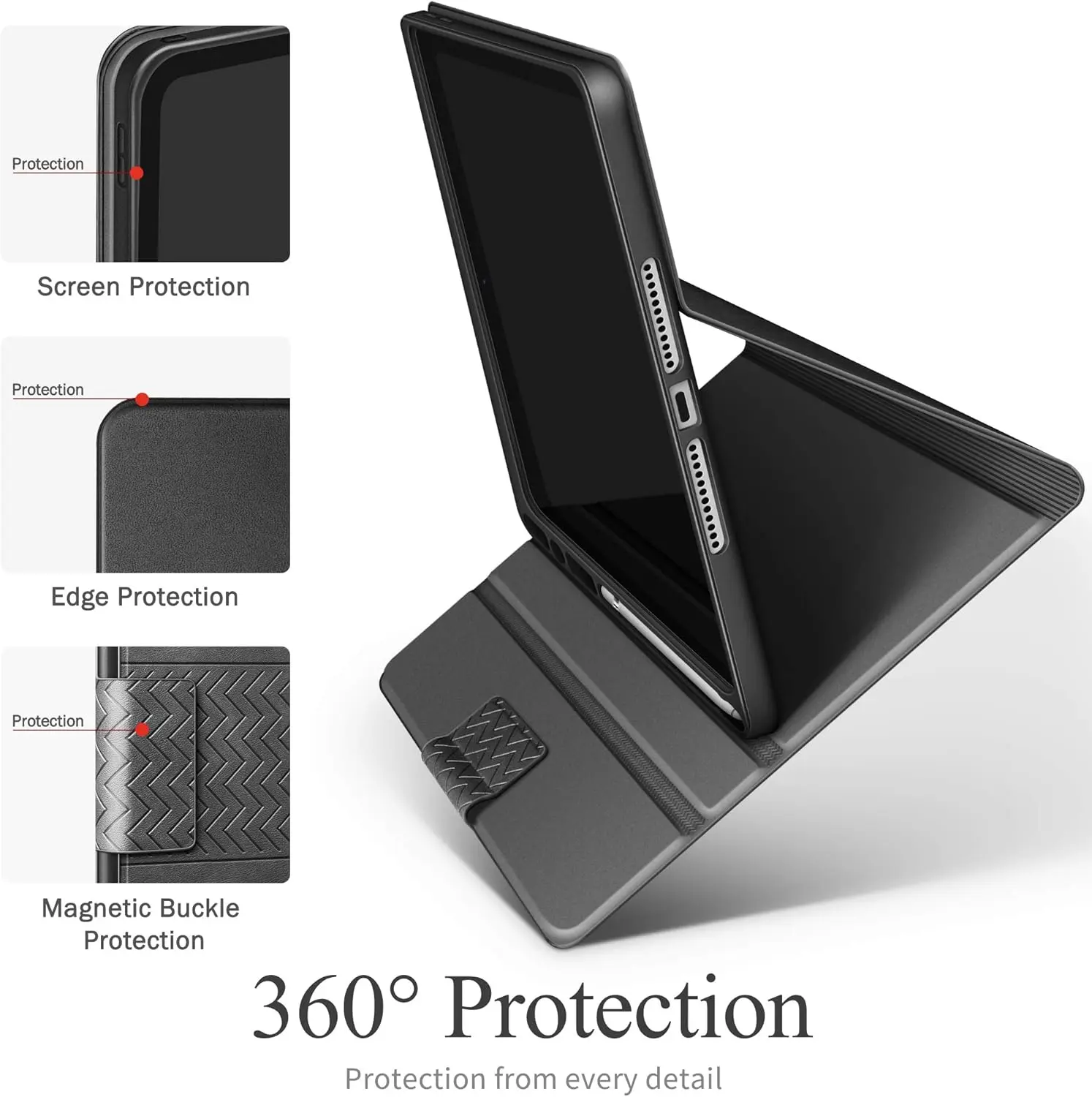 The auaua Case for iPad 9th/8th/7th Generation is a durable, soft-shell case designed to protect your device. It features a built-in pencil holder and supports automatic sleep/wake functionality. The anti-slip grooves provide adjustable viewing angles for hands-free use, while the magnetic closure conserves battery life. Made with high-quality materials, the case offers shock absorption and a soft interior lining for added protection. Its professional and stylish design, with a leather-like appearance, is easy to clean and available in multiple colors.