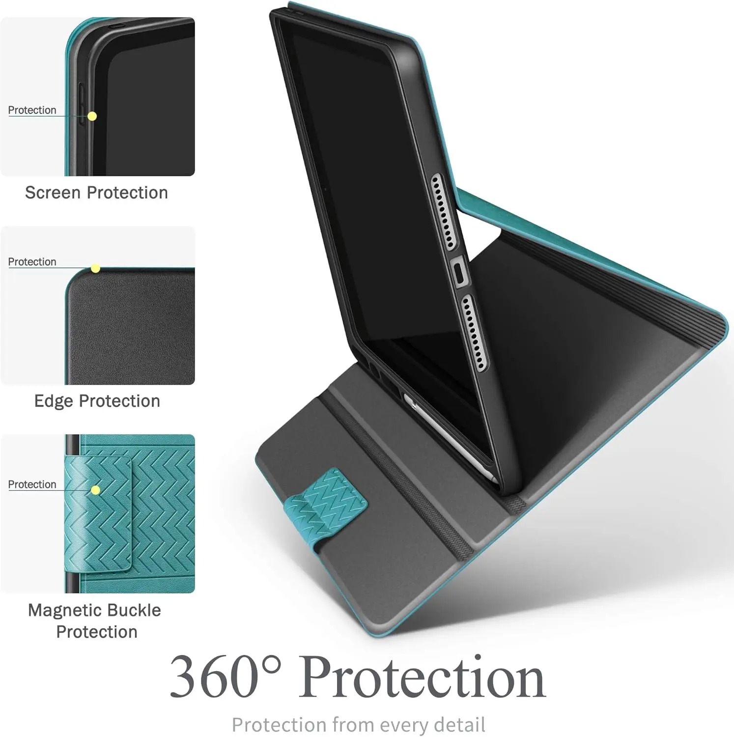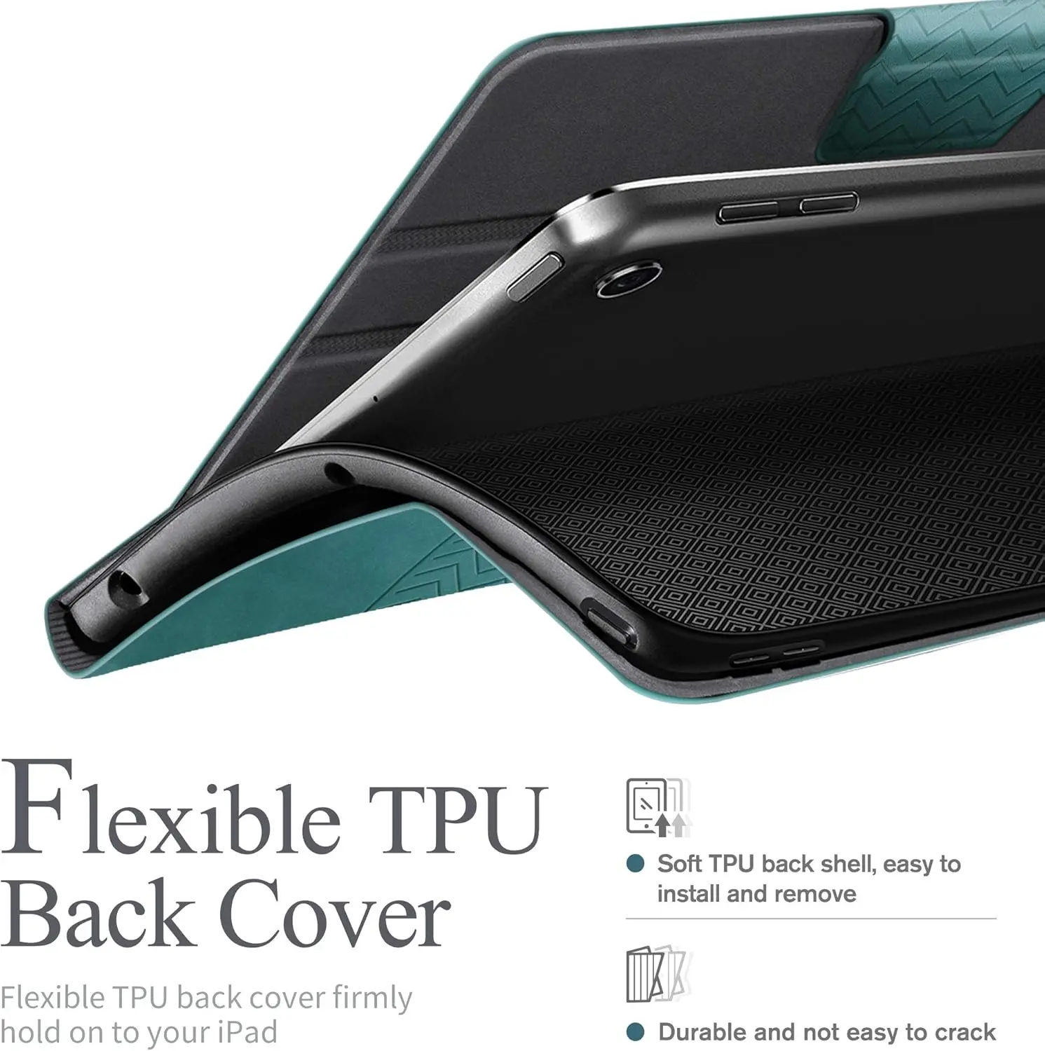 The auaua Case for iPad 9th/8th/7th Generation is a durable, soft-shell case designed to protect your device. It features a built-in pencil holder and supports automatic sleep/wake functionality. The anti-slip grooves provide adjustable viewing angles for hands-free use, while the magnetic closure conserves battery life. Made with high-quality materials, the case offers shock absorption and a soft interior lining for added protection. Its professional and stylish design, with a leather-like appearance, is easy to clean and available in multiple colors.