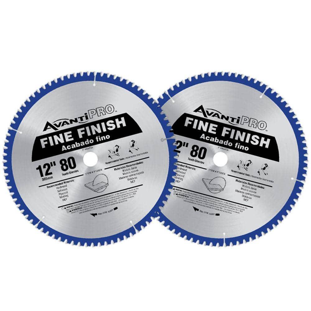 The AvantiPRO 12 in. Fine Finish Saw Blades provide smooth, precise wood cuts. Made from durable carbide and designed for 1 in. arbors. Includes two blades.