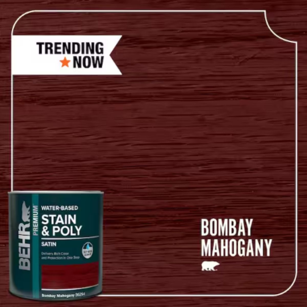 BEHR - 1 qt. #TIS-354 Bombay Mahogany Satin Semi-Transparent Water-Based Interior Stain and Poly in One
