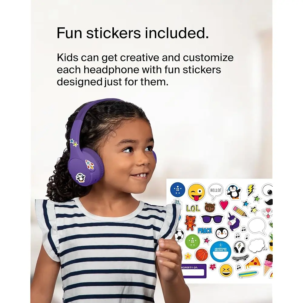 - Durable & Customizable: Designed to withstand up to 3,000 uses and accidental spills. Kids can also personalize their headphones with included fun stickers.