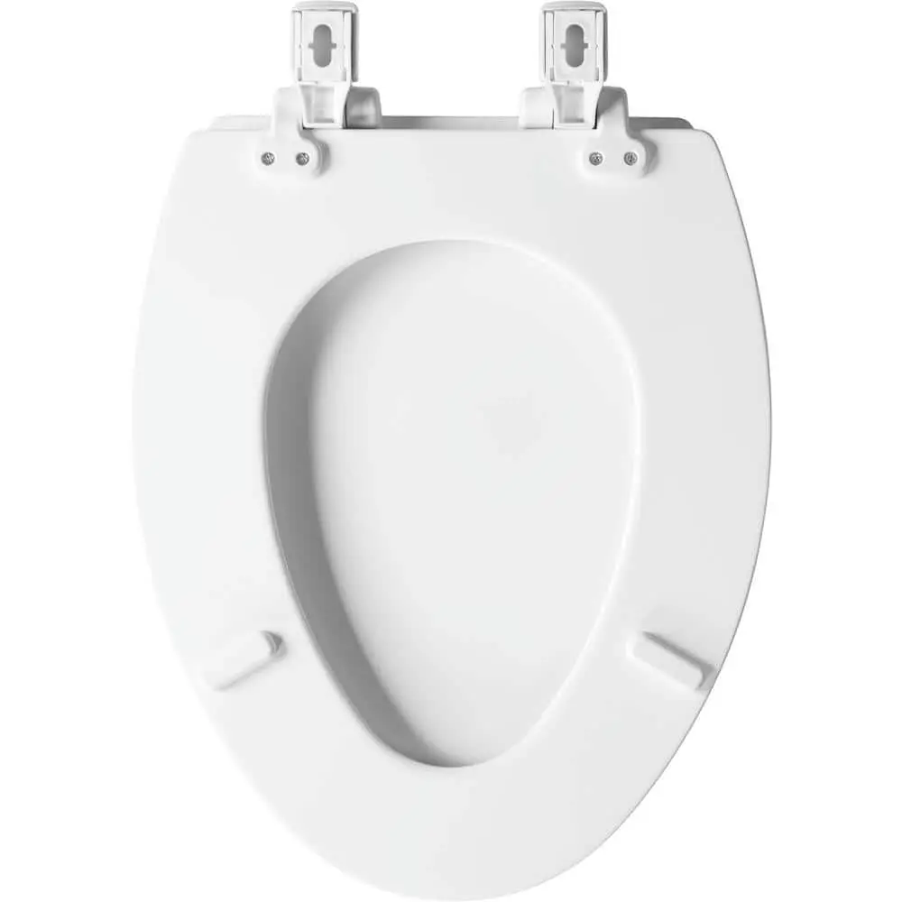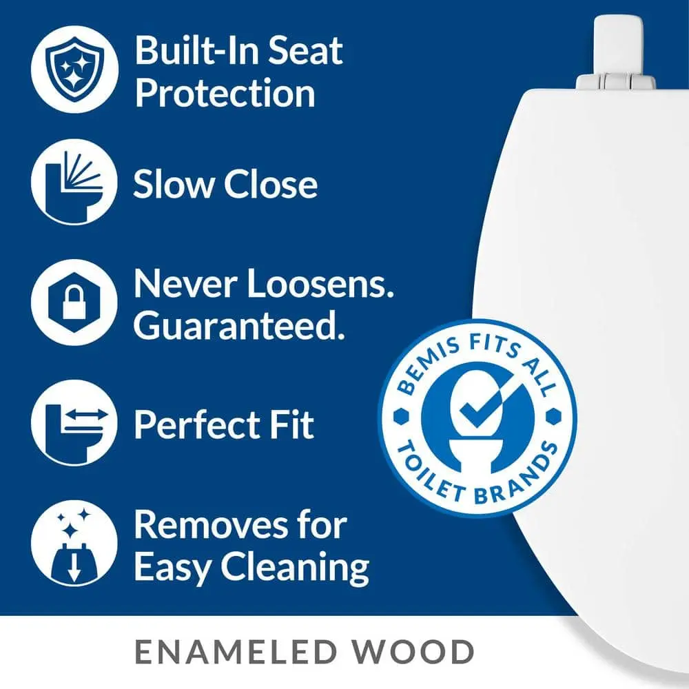 The Mr. Clean Elongated Closed Front Toilet Seat is crafted from durable enameled wood with a high-gloss finish that resists chipping and scratching. It includes built-in antimicrobial properties to inhibit bacterial growth. The STAY-TITE Seat Fastening System ensures a secure fit that wont loosen over time. The Whisper Close feature prevents slamming of both the ring and cover, while the Easy Clean design allows for quick removal for cleaning. This stylish seat is adjustable for a perfect bowl fit and is made with eco-friendly materials. Note that while it contains an antimicrobial agent to protect against odor and stain-causing bacteria, mold, and mildew, it does not provide protection against viruses or germs. Always clean the product thoroughly.