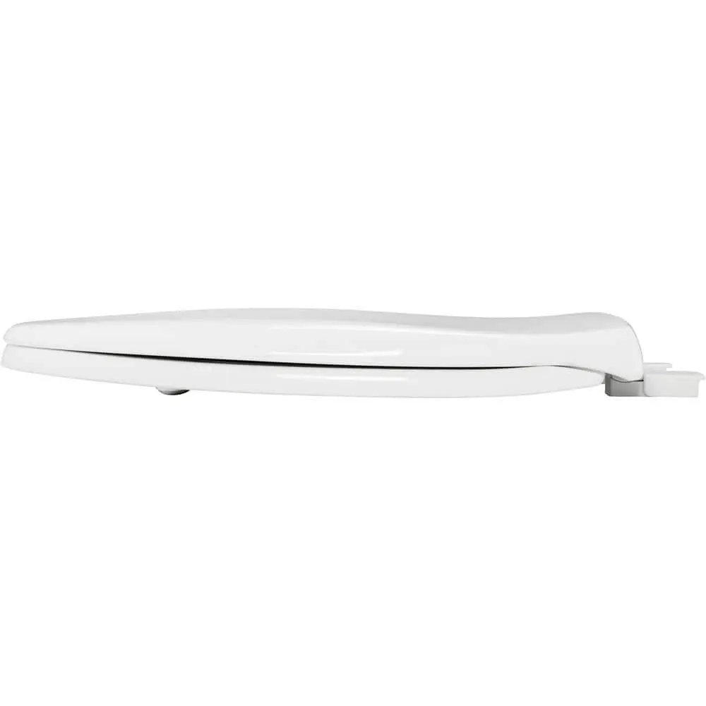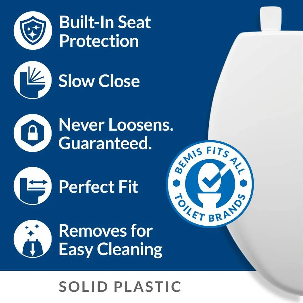 The Mr. Clean elongated closed front toilet seat is crafted from durable plastic, providing a smooth surface that is easy to clean and long-lasting. It features built-in antimicrobial properties to help inhibit bacterial growth. The Stay-Tite seat fastening system ensures the seat remains securely attached without shifting. The whisper-close feature prevents slamming of both the ring and cover, while the easy-clean design allows for quick removal for cleaning. This stylish seat also offers front-to-back adjustability for the perfect fit on the toilet bowl every time. Made with eco-friendly materials and processes, it includes an antimicrobial agent that protects against odor and stain-causing bacteria, mold, and mildew. Note that this product does not protect users from bacteria, viruses, germs, or other disease organisms.