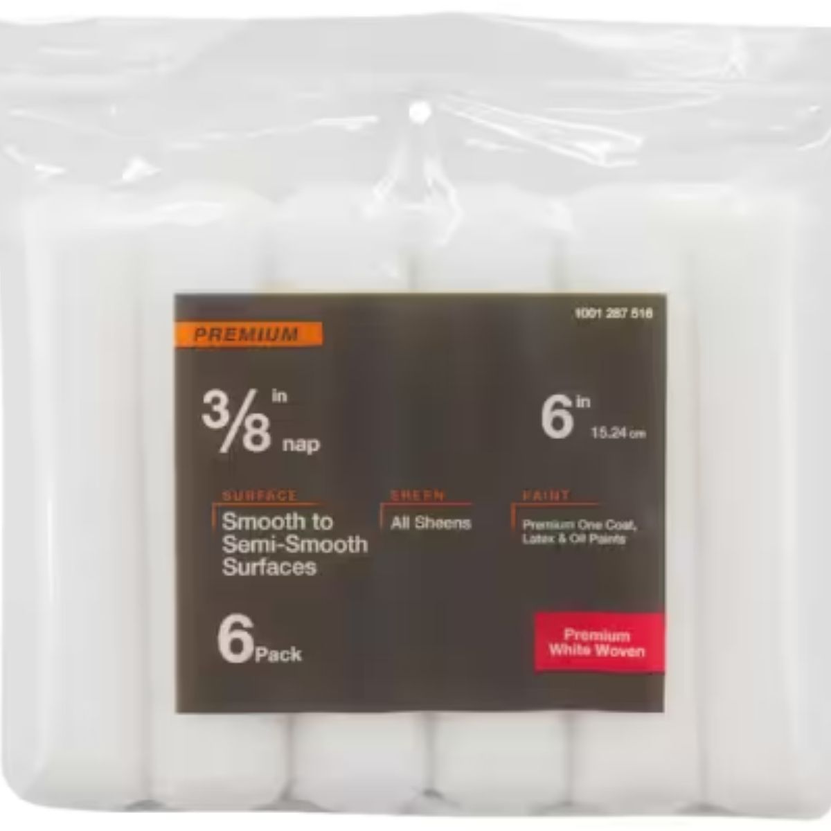 This 6-inch x 1/2-inch High-Capacity Polyester Knit Mini Paint Roller is designed to help you achieve professional-level results when painting. The knit fabric construction allows the roller to hold more paint compared to other types, which means fewer trips back to the paint tray and more time spent painting. It is versatile and can be used with all types of paints and stains, including premium latex and oil-based varieties. Ideal for small projects, tight spaces, and trim work, this roller is particularly effective for applying paint in areas that larger rollers can't reach easily. The roller covers fit standard 6-inch mini roller frames and are shed-resistant, ensuring a smooth application and minimizing lint or fibers in your finish. This 6-pack of rollers provides added value, making it a practical choice for various painting projects.