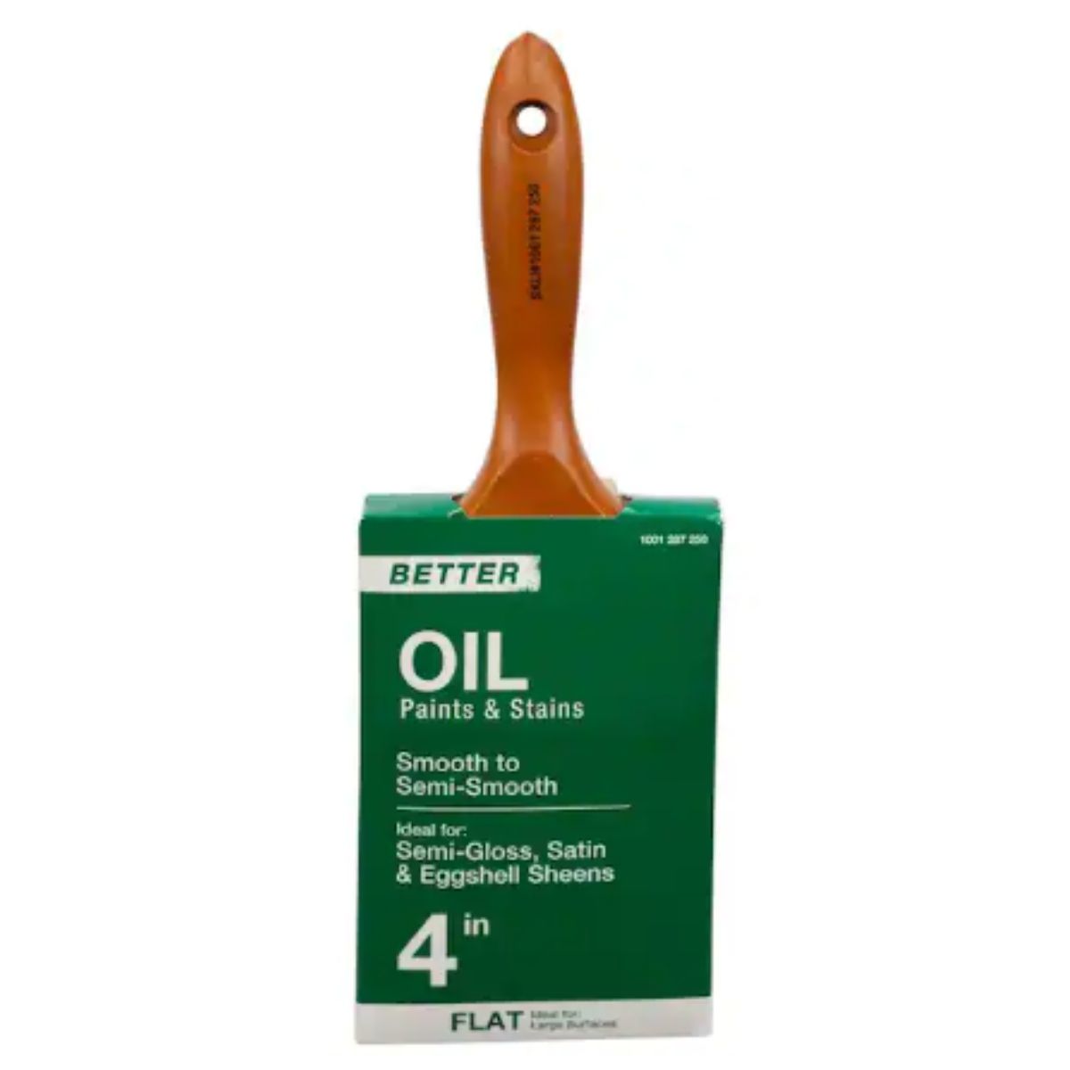 This 4-inch flat cut brush is crafted from a high-capacity blend of white Chinese bristle and polyester filament, specifically designed for use with oil-based paints and stains. Its flat cut design makes it ideal for efficiently covering large surfaces with smooth and even coats. The brush is equipped with a varnished solid wood handle for comfortable grip and control during application. Its rust- and solvent-resistant ferrule ensures durability, suitable for use in challenging painting environments. Additionally, the brush is reusable when cleaned properly, offering longevity and reliability for various professional and DIY painting projects. Please note that product availability may vary by store.
