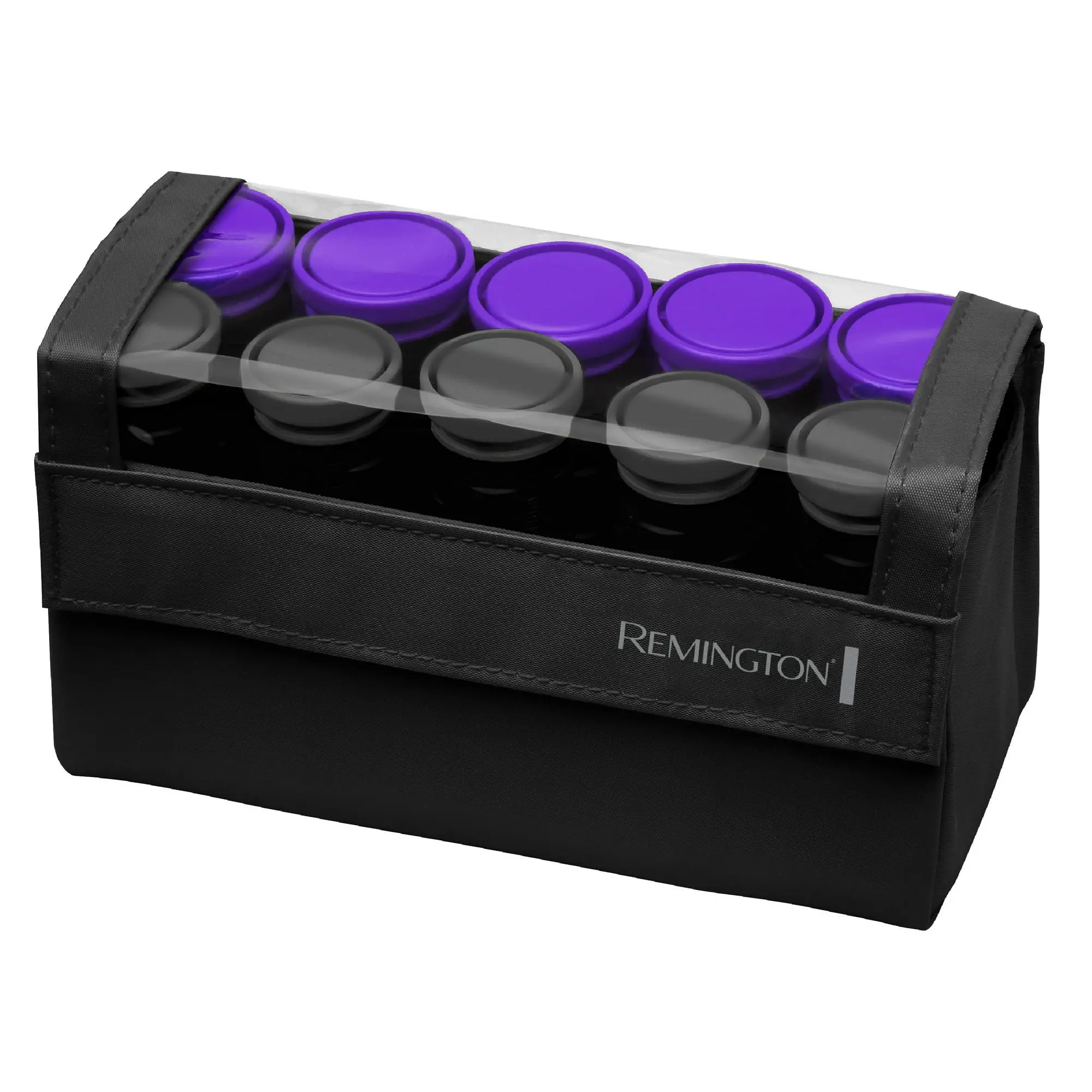 Achieve large and medium curls with reduced frizz using the Remington Compact Roller Set. Designed for easy storage and featuring worldwide voltage, this roller set is ideal for travel. It includes 10 rollers in two sizes—five large (1¼") and five medium (1")—that heat up in just 90 seconds, providing long-lasting volume and curls. The exclusive J-clips are color-coded to match the roller sizes and are specifically designed to secure the rollers in place with minimal creasing.