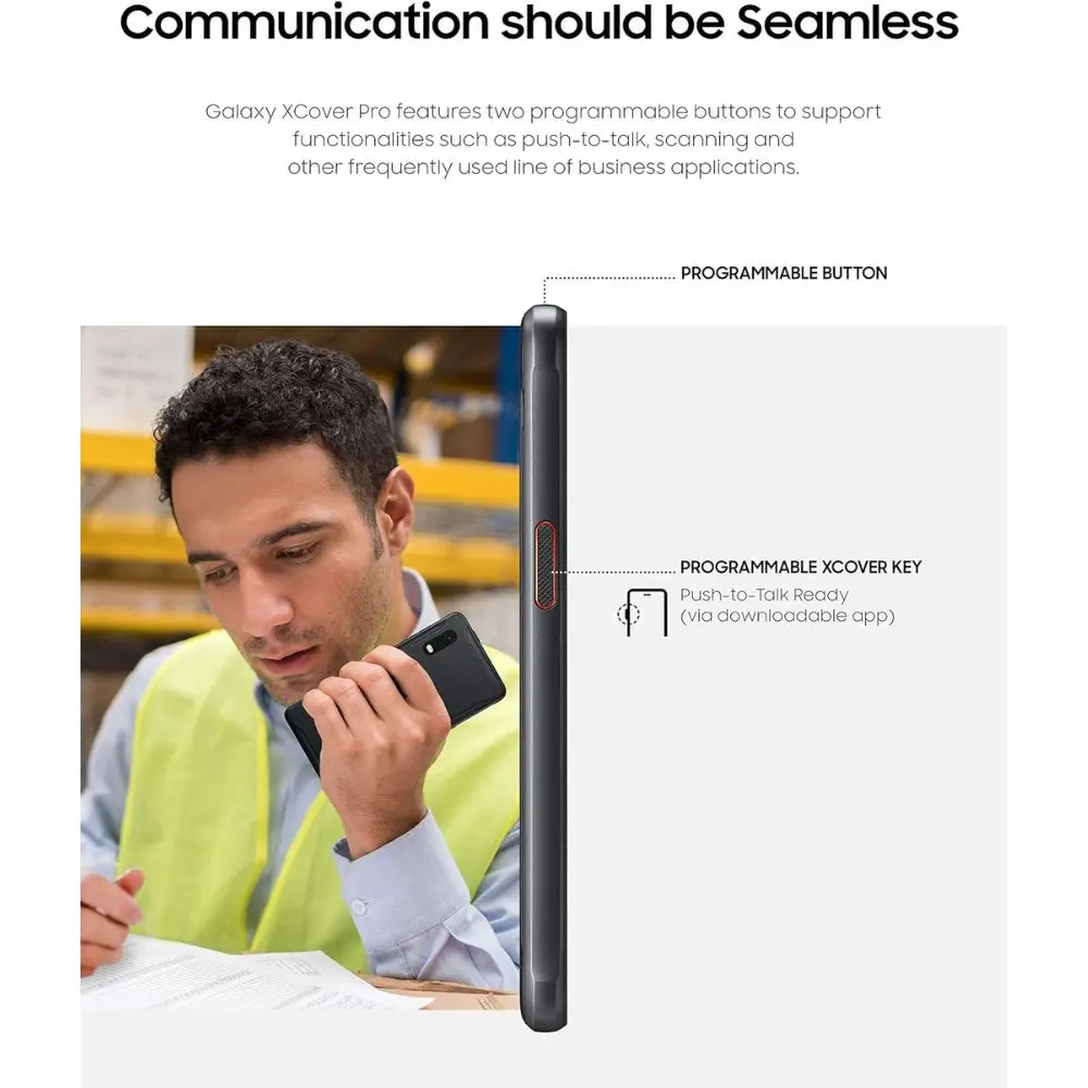 The Galaxy XCover Pro enhances the capabilities of every team member, allowing them to manage multiple tasks on a single device, regardless of where the job takes them. This military-grade smartphone is designed to withstand the challenges of real-world conditions while offering a user-friendly and familiar interface. You can also manage your team’s devices remotely, boosting operational efficiency in the field. With a fully rugged design, you can tackle any job in any environment with confidence. Built for the future of work, this device allows you to do more with a single unit, offering Knox defense-grade security and customizable capabilities through a comprehensive partner ecosystem. It also features optional mobility software and business services to simplify IT management.
