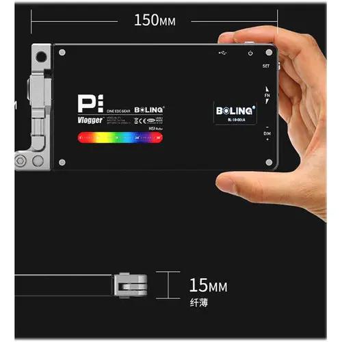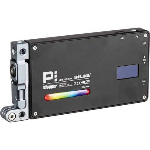 uitable for vlogging use, the on-camera Pocket LED RGB Video Light from BOLING features a built-in 360° mount and a pocket-sized form. Select from 360 colors in RGB mode, adjust the color temperature from 2500 to 8500K to match an ambient light source, or choose from nine special effect modes. The Pocket LED RGB Video Light's integrated battery charges to full power in 140 minutes and incorporates a safety feature to prevent overheating. You'll find an LCD display on the rear of the light with two control dials and one button on the side. This aluminum fixture has a built-in on/off switch and includes a charging cable, a 1/4-20" shoe mount, an Allen wrench, and a carrying pouch.
