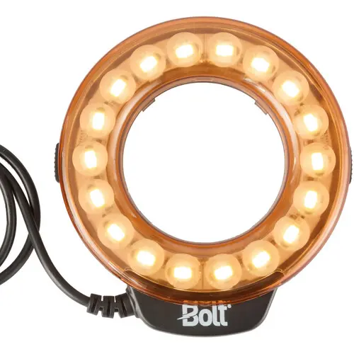 The Bolt VM-160-V2 LED Macro Ring Light (Version 2) is designed to deliver even and bright illumination, making it perfect for macro photography, portraits, and product shots. With 160 high-quality LEDs, it offers adjustable dimming and a color temperature range of 3200K to 5600K, providing versatile lighting options. Powered by USB, it ensures portability and ease of use while maintaining a compact and lightweight design. Whether you're capturing intricate details or shooting close-ups, the Bolt VM-160-V2 LED Macro Ring Light (Version 2) is an excellent tool for achieving professional results