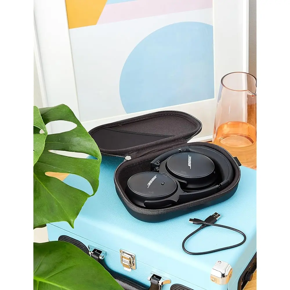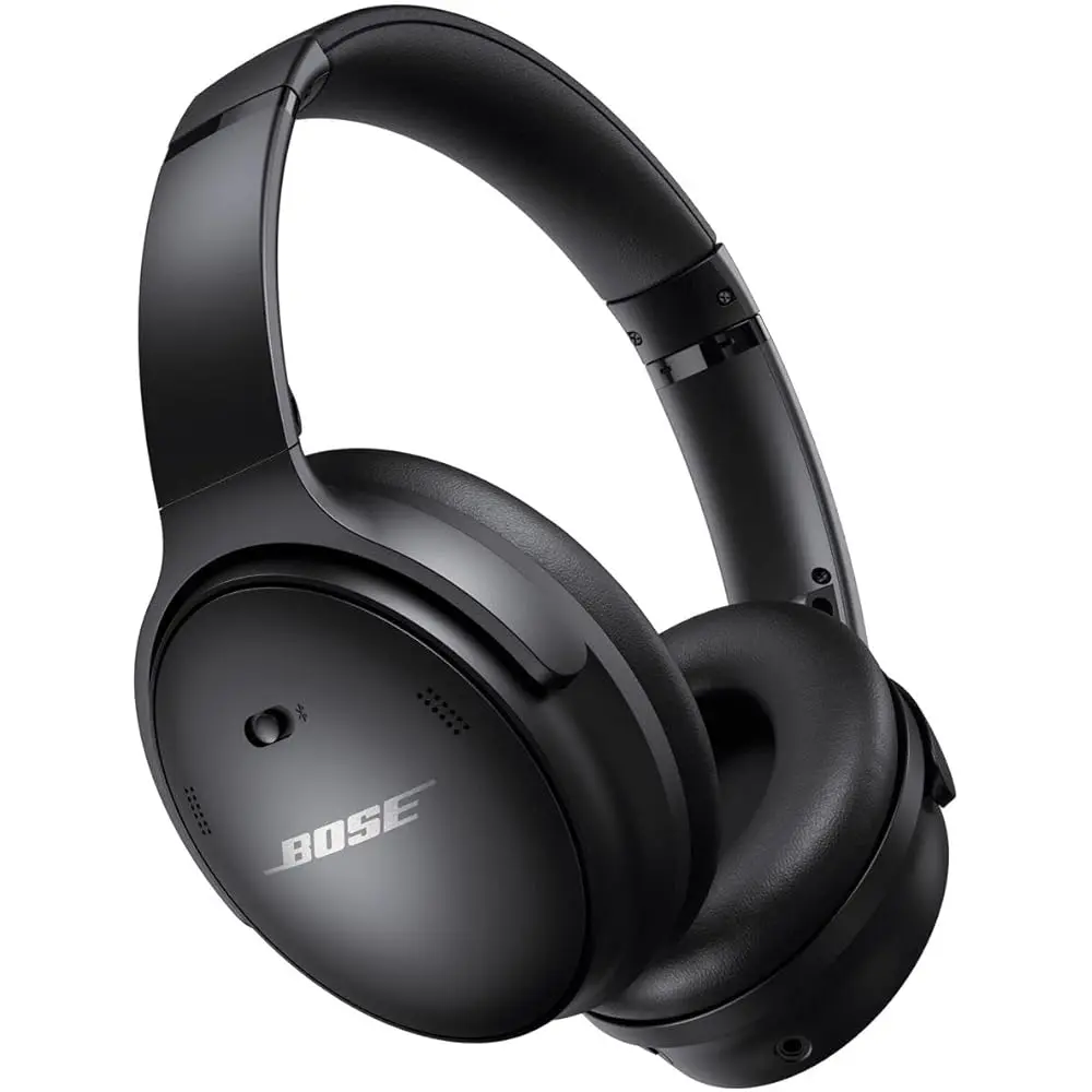 The Bose QuietComfort 45 headphones bring back the iconic noise-cancelling experience with refined design and advanced technology for exceptional sound. Crafted with lightweight, durable materials like plush synthetic leather and impact-resistant glass-filled nylon, these headphones ensure comfort and longevity. The minimal clamping force adds to the feeling of weightlessness. Enhanced Acoustic Noise Cancelling technology delivers a truly quiet experience, allowing you to fully immerse in your music. Alternatively, the new Aware Mode lets you blend your music with the surrounding environment. The TriPort acoustic architecture and Volume-optimized Active EQ maintain deep, balanced sound at any volume. Offering up to 24 hours of playtime and USB-C charging, these headphones feature six microphones for clearer calls. Bluetooth 5.1 ensures a stable connection, while the Bose app provides easy setup, personalization, and software updates.