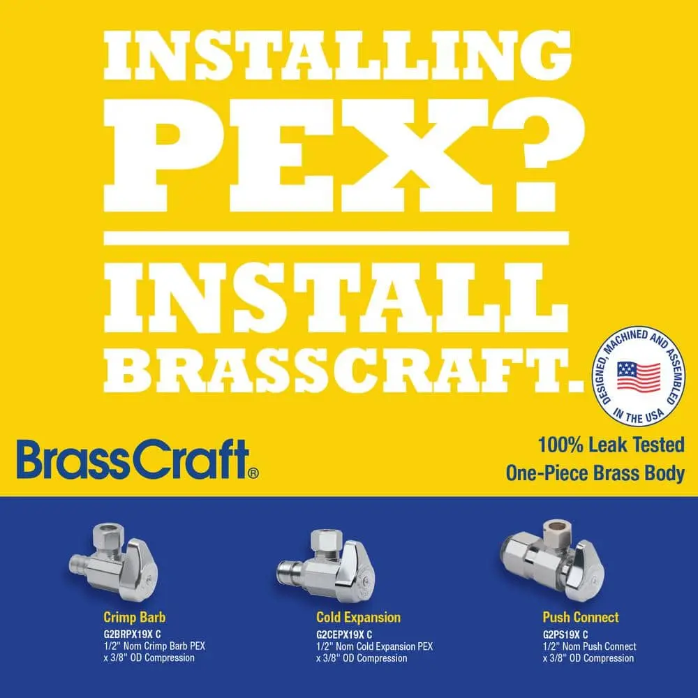 BrassCraft's G2 Series stops feature durable construction and reliable performance. The 1-piece shut-off mechanism offers years of smooth, 1/4-turn operation without freeze-ups. Chrome plating ensures corrosion resistance and a refined look. All G2 series valves are 100% leak tested for dependable, leak-free operation. The crimp PEX end meets ASTM F1807 standards.