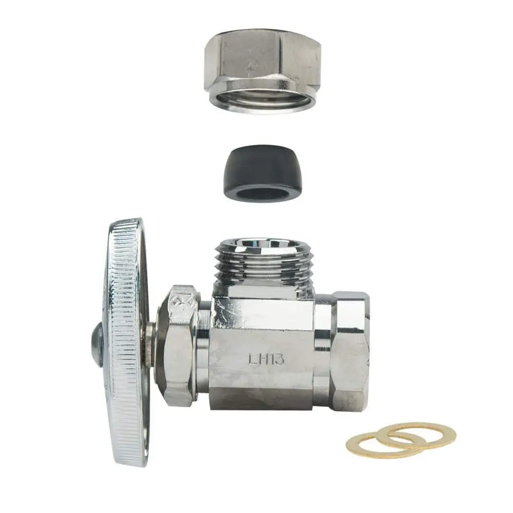 The BrassCraft 1/2 in. FIP Inlet x 7/16 in. & 1/2 in. Slip-Joint Outlet Multi-Turn Angle Valve is designed to control water flow to household plumbing fixtures such as faucets, toilets, dishwashers, ice makers, and washing machines. Commonly used where the water pipe enters from the floor, this valve allows you to stop the flow of water with just a few turns of the handle, enabling maintenance and repairs without turning off the entire water supply.