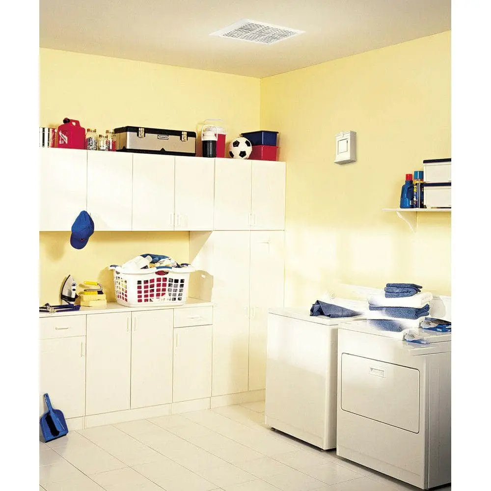 The NuTone 696N Wall/Ceiling 50 CFM Bath Fan, designed for optimal performance in bathrooms up to 45 sq. ft. and utility or recreation rooms up to 60 sq. ft. This fan efficiently removes odors and moisture, keeping your environment fresh and comfortable. Sleek white polymeric grille enhances your decor. The innovative torsion springs allow for easy adjustment to accommodate varying ceiling or wall thicknesses, ensuring a seamless installation. Upgrade your ventilation with the NuTone 696N and enjoy a more pleasant atmosphere in your home!