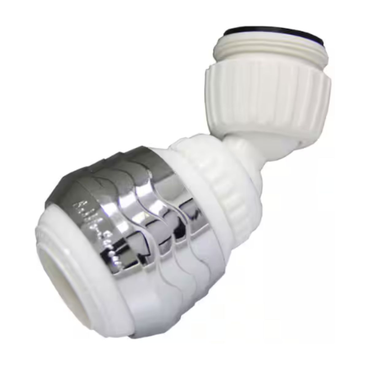 The Bubble-Stream 2.2 GPM double swivel spray is perfect for your kitchen, compatible with most faucets featuring standard inside or outside threads. Sporting an appealing white and chrome finish, it boasts double swivel functionality, enabling access to tricky spots in your sink. Just pull down to transition effortlessly between stream and spray water flow.
