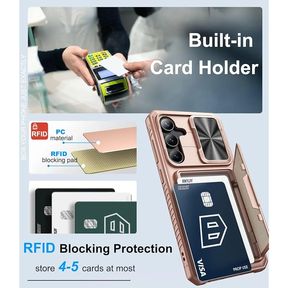 BXYJY for Samsung Galaxy S24 Wallet Case, Built-in Card Holder 2024, Rose Gold