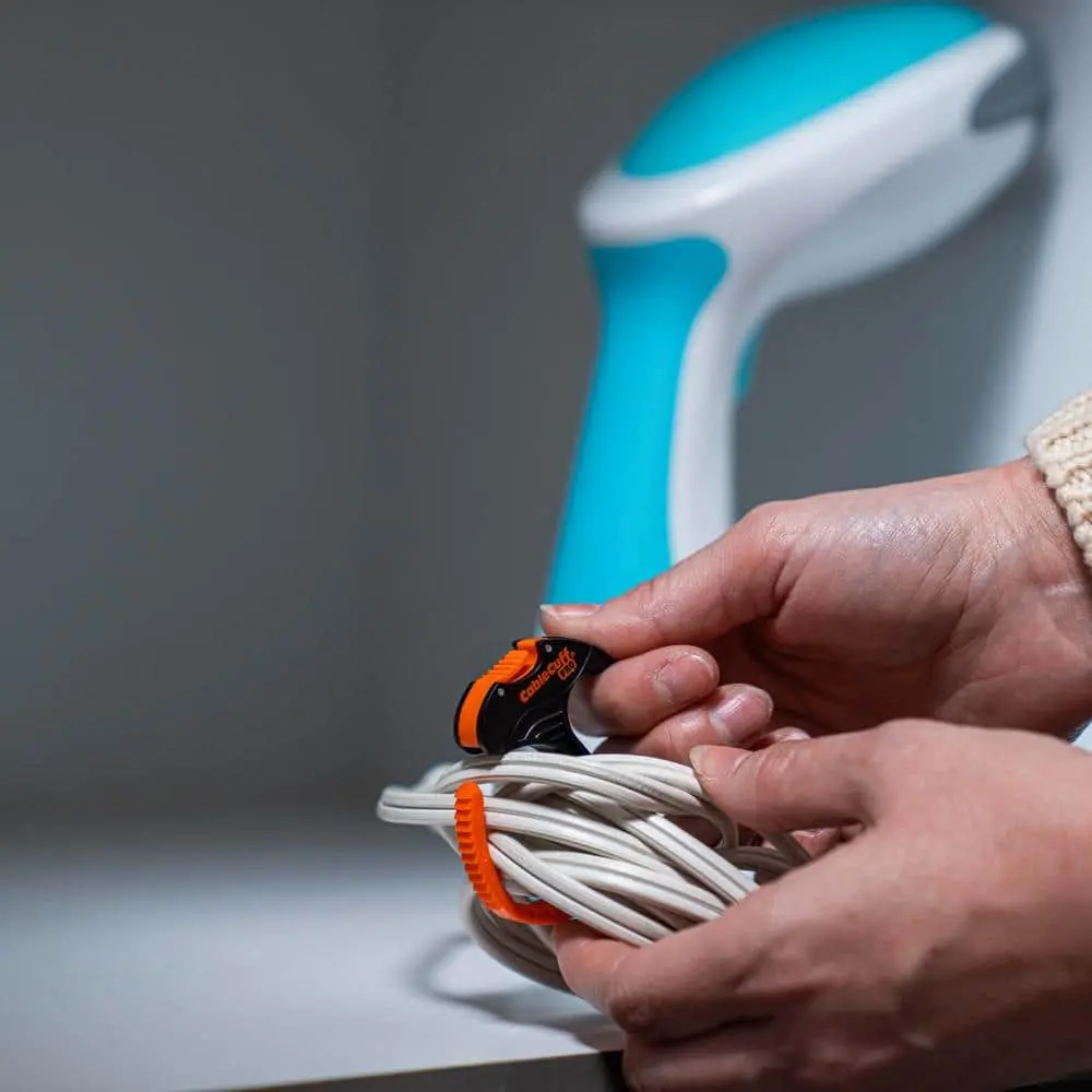The Cable Cuff PRO is the ultimate reusable cable management tool, designed for efficiency, durability, and convenience. It features a unique push-button release, flexible polycarbonate construction, and patented hinge operation with self-aligning teethed jaws for multiple open positions. The flat-laying design ensures easy handling and storage, while its 360-degree footprint and ergonomic details provide comfort and functionality. Reusable and eco-friendly, the Cable Cuff PRO replaces disposable cable management devices, offering a sustainable solution for organizing cables, cords, and bundles up to 1 inch. Perfect for electronics, power tools, and appliances.