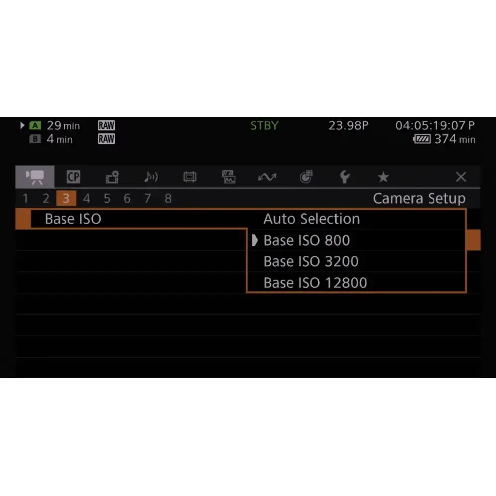 - Triple Base ISO (800, 3200, 12,800): Provides superior performance across various lighting environments, allowing the camera to perform in both bright and low-light settings with full dynamic range.