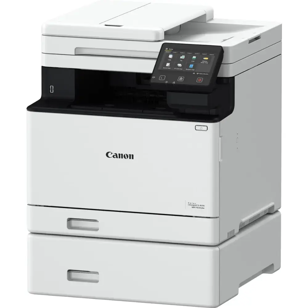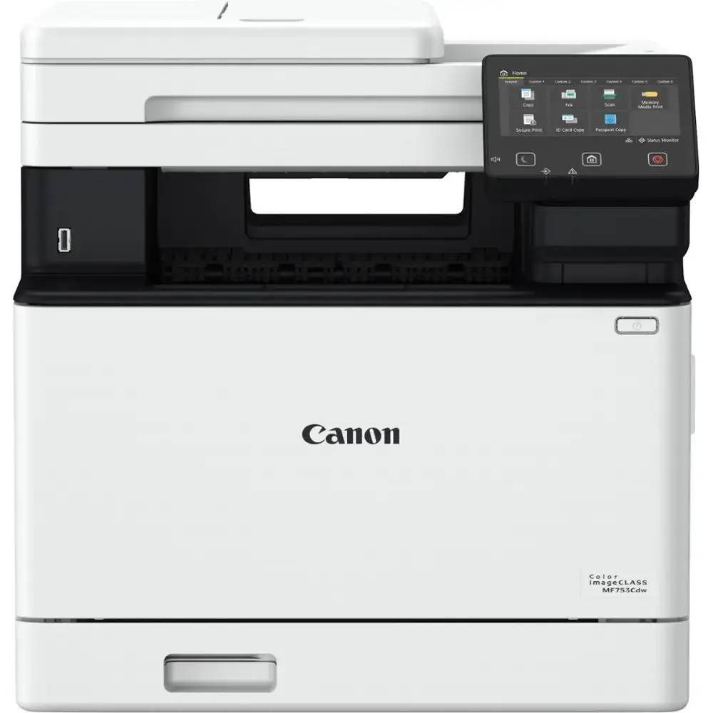 The Canon imageCLASS MF753Cdw Wireless Color All-In-One Laser Printer with Fax delivers high-speed printing up to 35 pages per minute (ppm) and combines print, scan, copy, and fax capabilities in one efficient device. It features wireless, Ethernet, and USB connectivity, along with mobile printing support through AirPrint, Google Cloud Print, and the Canon PRINT Business app. With high-quality color laser printing, it produces sharp text and vibrant images, ideal for professional documents. The printer includes a 250-sheet paper cassette, a 50-sheet automatic document feeder (ADF), and an intuitive 5-inch color touchscreen for easy operation. It also offers advanced security features, such as secure print and user authentication, and is ENERGY STAR® certified for energy efficiency.