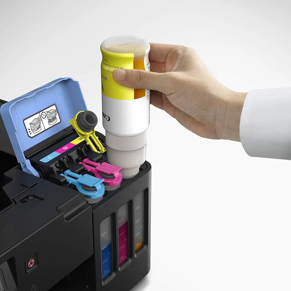 MegaTank technology offers significant savings on ink compared to traditional cartridges, with a full set of color ink and three black bottles included in the box. This allows you to print business reports, full-color flyers, and more without worrying about running out of ink or costly cartridge replacements.