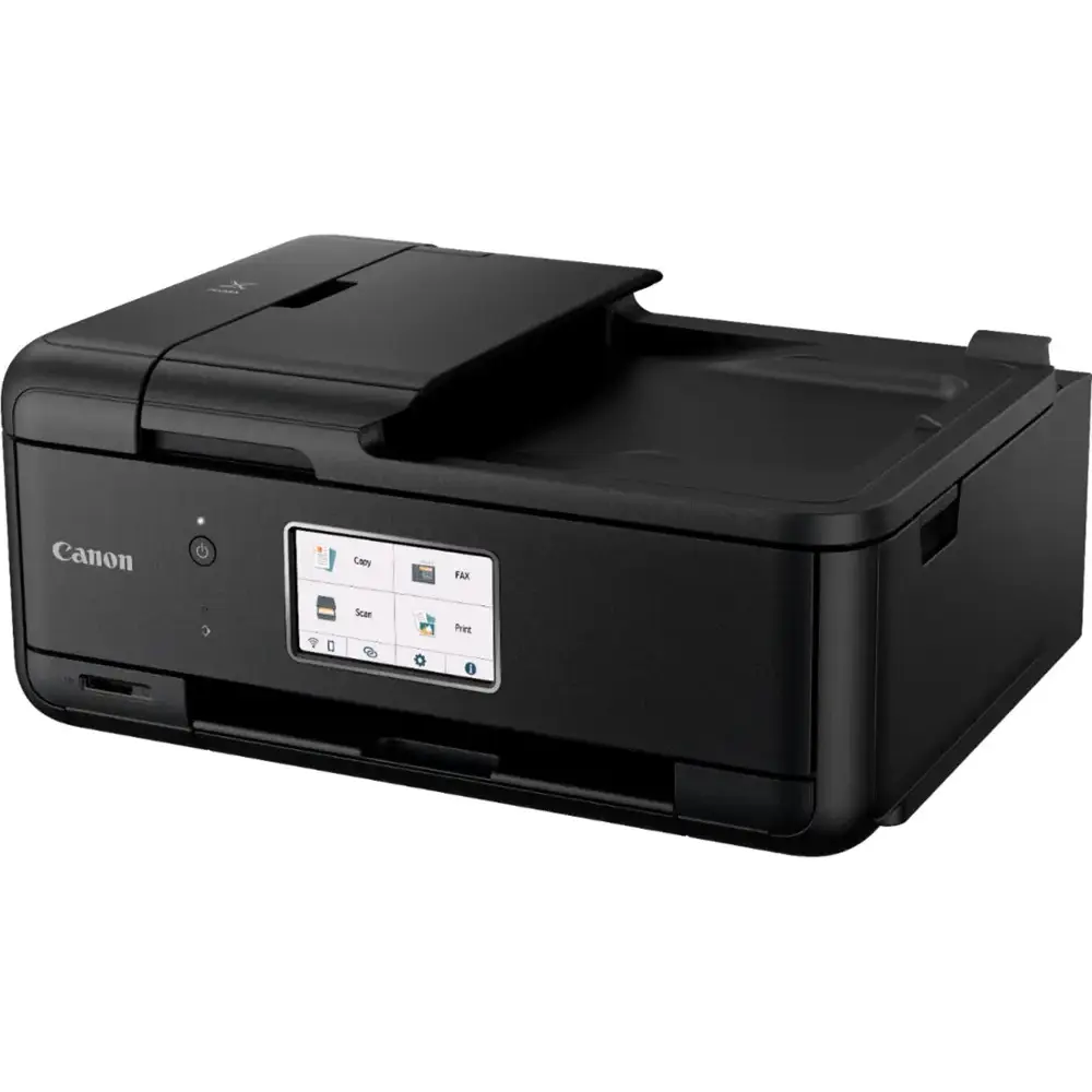 The Canon PIXMA TR8620a Wireless All-In-One Inkjet Printer offers versatile all-in-one functionality with print, scan, copy, and fax capabilities. Designed with wireless connectivity, it allows for easy printing from mobile devices. Its compact design and sleek black finish make it perfect for any home or office setup. The printer features an automatic document feeder for efficient multi-page scanning and copying, and supports borderless printing for stunning photo quality. Powered by a 5-color individual ink system, it ensures vibrant, detailed prints. Additionally, it supports voice-activated printing through Alexa and Google Assistant, with a user-friendly touchscreen for smooth operation.
