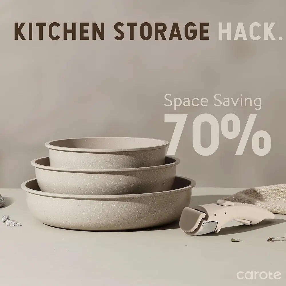 The CAROTE Detachable Handle Cookware Set is a game-changer in the kitchen. This innovative set offers a perfect blend of style, functionality, and versatility.