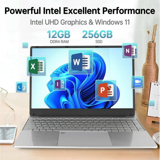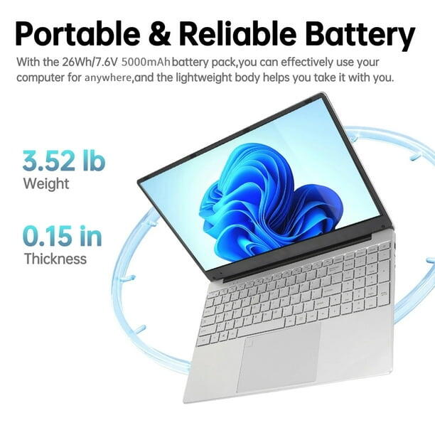 The 15.6-inch laptop offers outstanding performance with an Intel Celeron N5095 processor, which reaches speeds of up to 2.9GHz, combined with cooling fins and a turbine fan to ensure optimal performance. The upgraded 12GB LPDDR4 RAM significantly improves speed and efficiency, while the 256GB SSD offers ample storage. The laptop features a 15.6-inch FHD IPS display with a 90% screen-to-body ratio, providing sharp, vibrant visuals. It also includes convenient features such as a fingerprint sensor for easy login and a backlit keyboard for comfortable typing in dim environments. With a large 5000mAh battery, it ensures long-lasting use for work, study, gaming, and more.