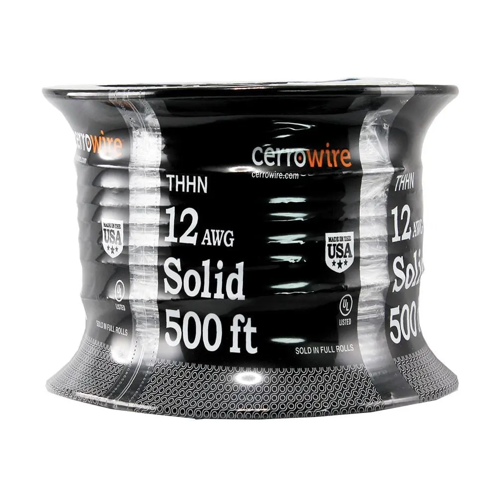This 500 ft. roll of 12-Gauge solid THHN wire is UL and CSA listed for safety and reliability. Made from durable copper with a nylon jacket, this wire is designed for use in both commercial and industrial applications as per the NEC standards. Its heat and moisture-resistant PVC insulation ensures effective performance in a variety of environments.