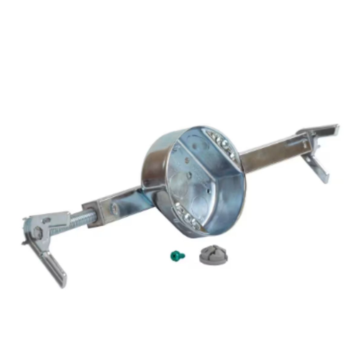 This 15.3 cu. in. ceiling fan brace simplifies safe installation of your fan or lighting fixture without attic access. Suitable for new or remodel projects, it fits through a 4 in. hole in finished ceilings. Compatible with all fans, it securely locks into ceiling joists with multiple teeth, adjusts quickly with a threaded twin-lead screw, and offers easy turning with a hex tube. The electrical box can be placed anywhere on the brace for flexibility. Works with ceiling joists between 16 in. and 24 in. wide. Includes installation instructions and is UL listed to support fixtures up to 150 lbs. on 16 in. centers and 50 lbs. on 24 in. centers; supports fans up to 70 lbs.