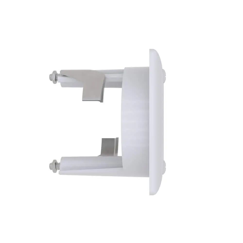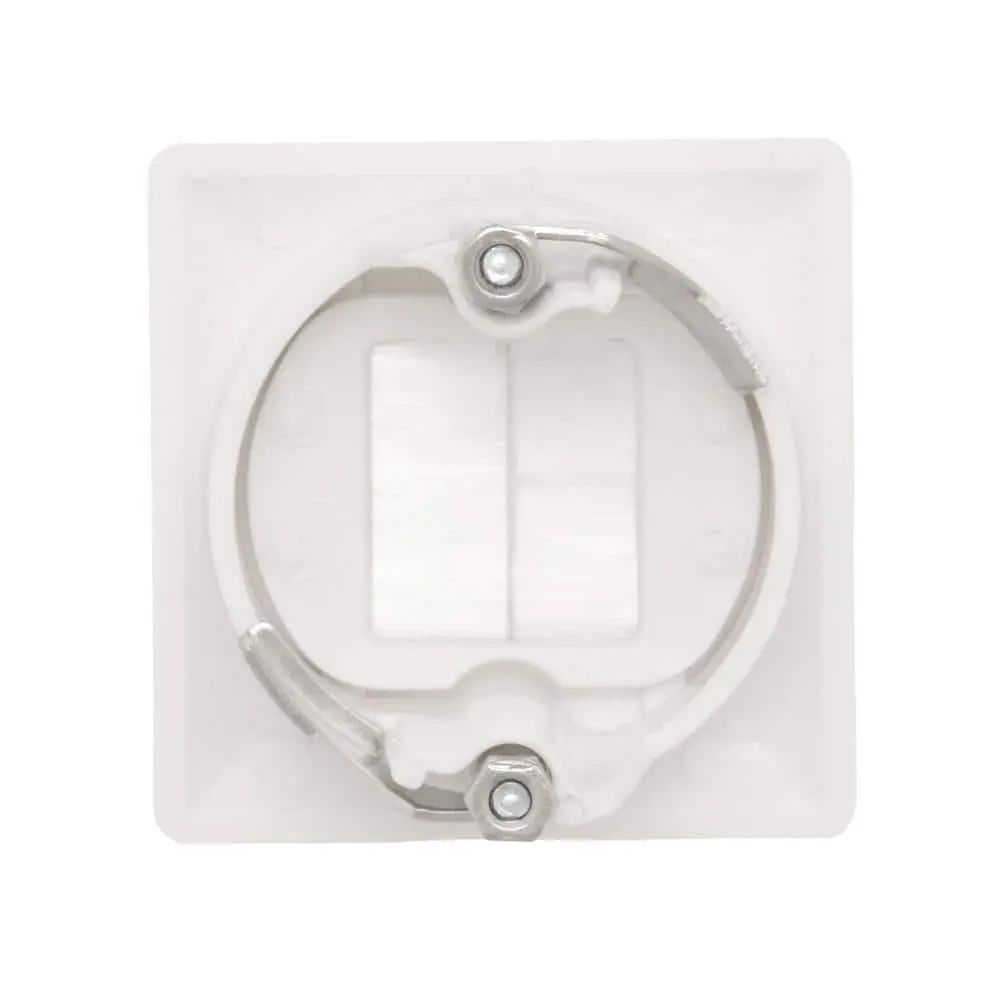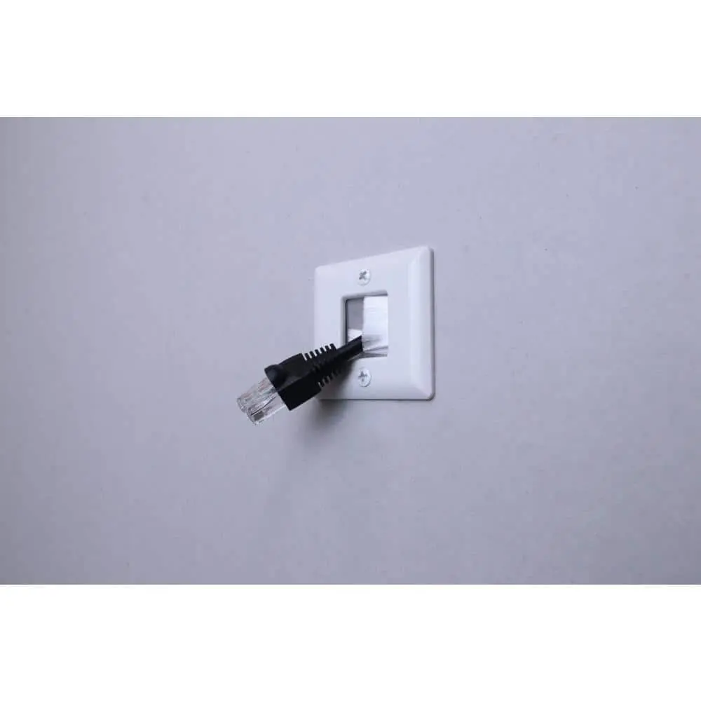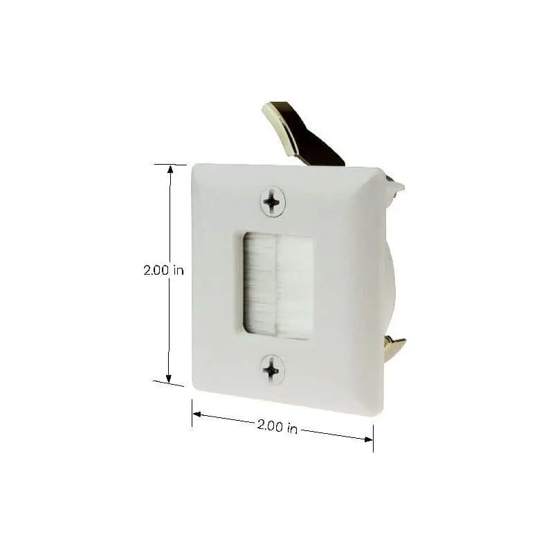 The Commercial Electric Hole Saw Brush Wall Plate is designed for routing low voltage cables behind compact home theater and security systems. Its low-profile design is perfect for hiding connections to devices like speakers, cameras, and similar setups. The plate features metal mounting wings that ensure a secure fit, eliminating the need for a separate mounting bracket.