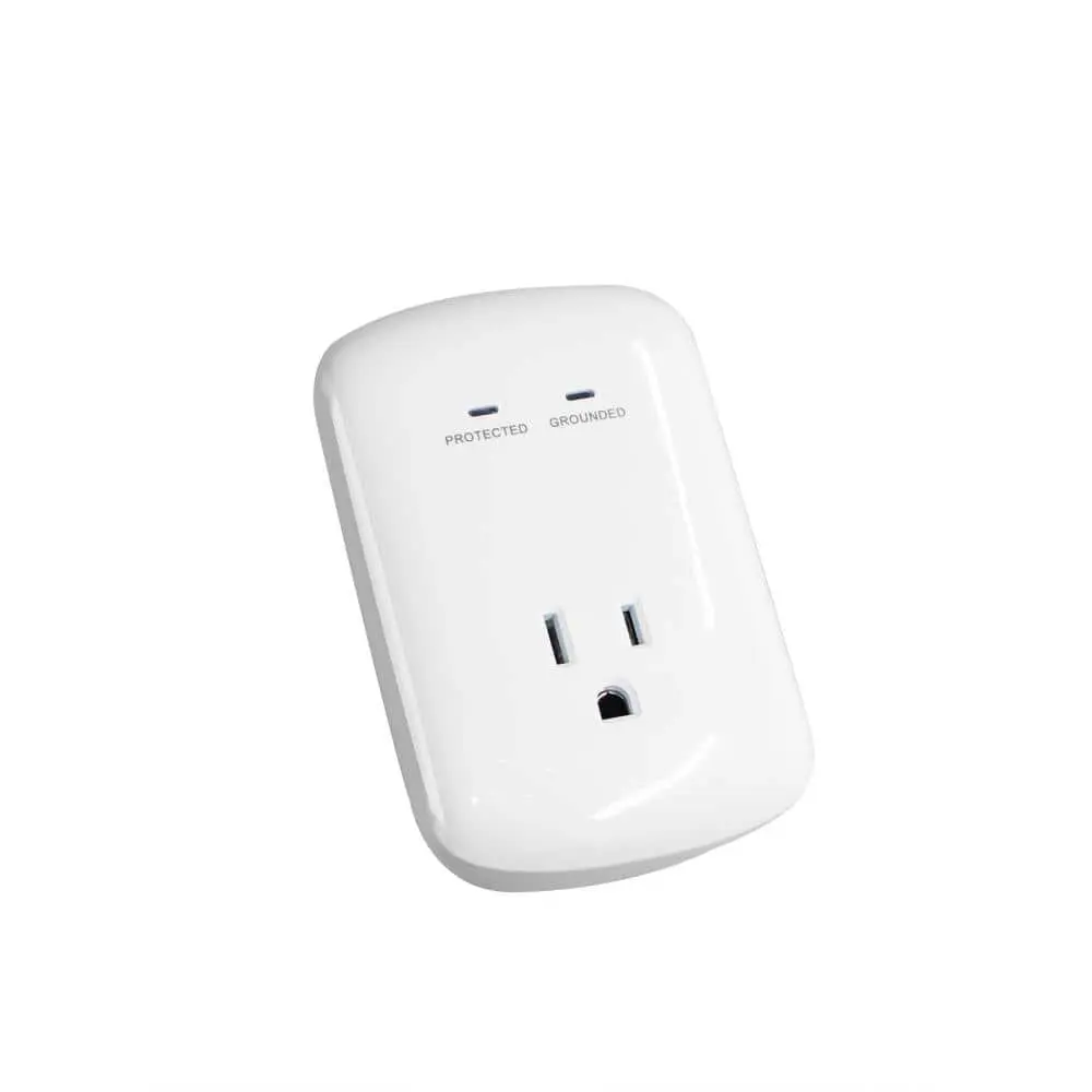 This power strip offers 1 surge-protected outlet with 1225 joules of surge protection. It includes a grounded indicator and a protected indicator for easy monitoring. Designed for indoor use only.
