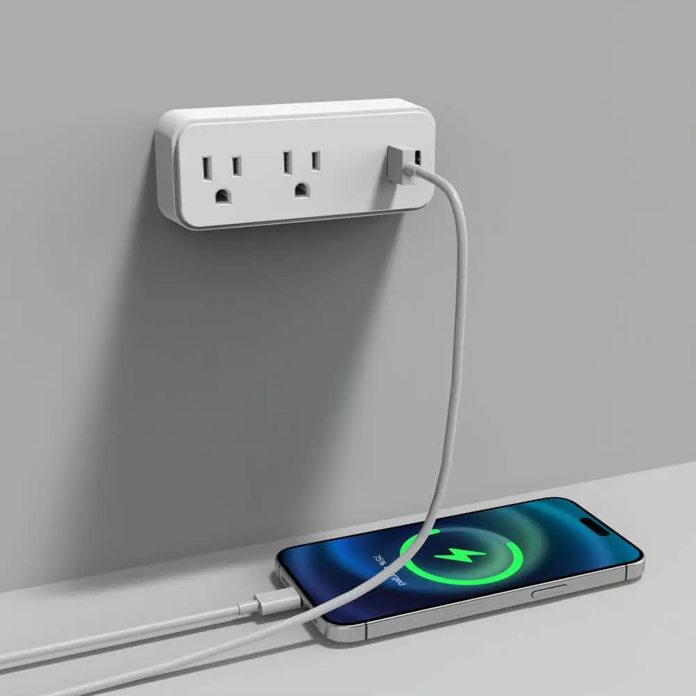 This USB outlet extender allows you to power and charge up to 4 devices simultaneously without any obstruction. It transforms a standard outlet into a versatile, multi-purpose charging station. Its portable design makes it easy to carry while traveling.