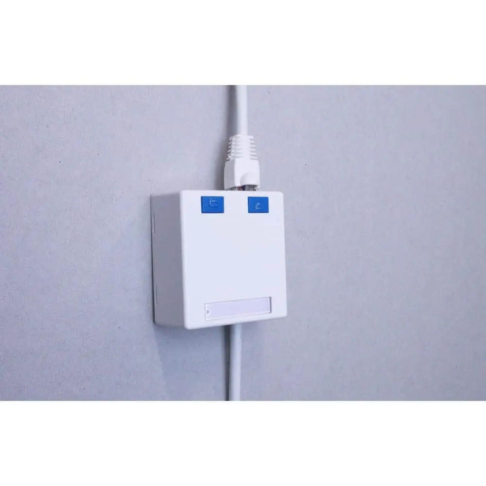 About This Product: Easily add network connections with the Commercial Electric 2-Port Cat5e/Cat6 Surface Mounting Box. It supports standard keystone jacks (Cat5e, Cat6, Cat3) and mounts quickly to walls, floors, baseboards, or furniture. The front ports offer easy access for connections.