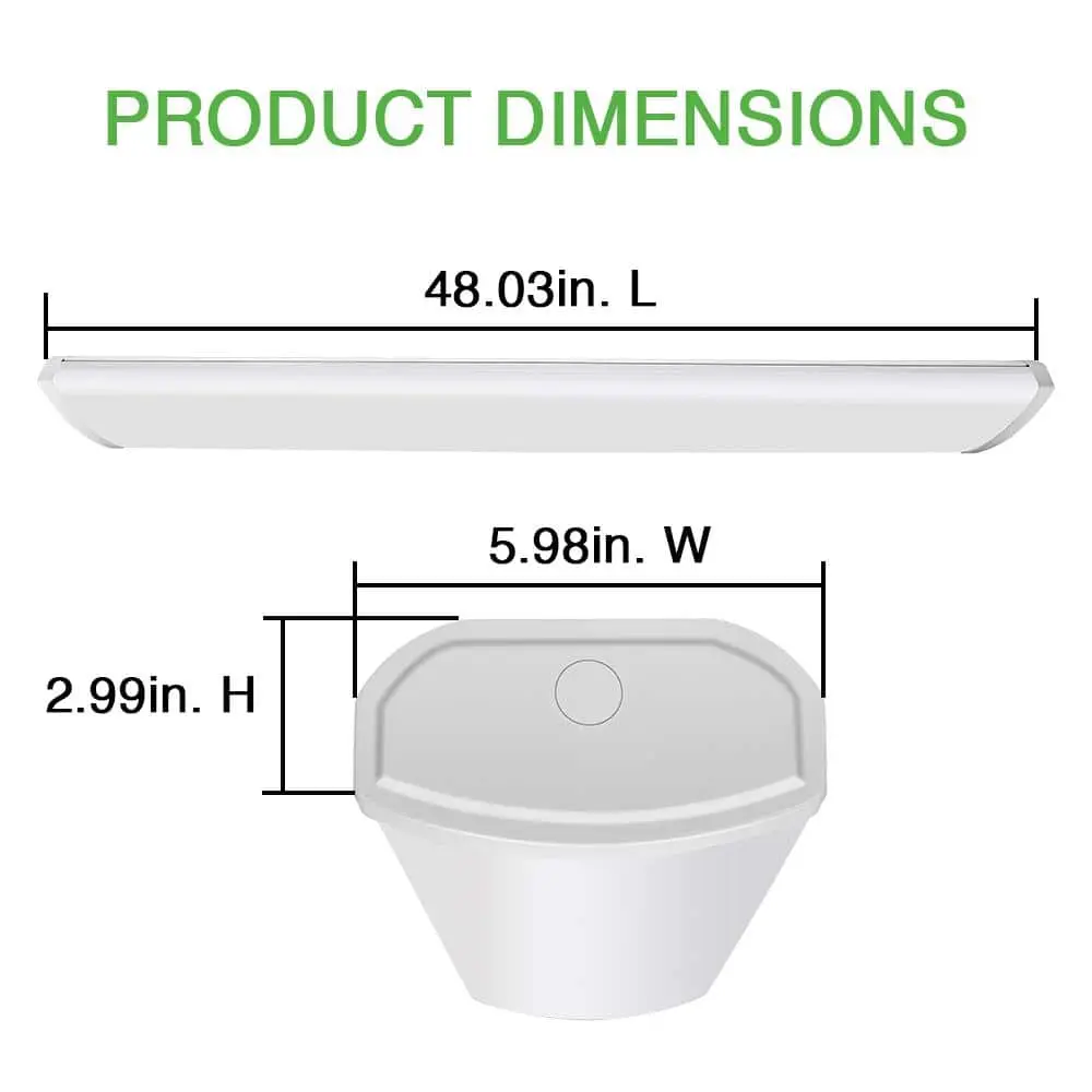 Illuminate your workshop or storage space with the Commercial Electric 4 ft. LED Wraparound Ceiling Light. This energy-efficient fixture reduces power consumption by up to 79%, delivering 3,600 lumens while using only 40 watts. Designed for durability, it features impact-resistant construction and provides even, crystal-clear lighting without discoloration or dark spots over time. With a maintenance-free design and long lifespan, this LED wrap light is ideal for laundry rooms, workbenches, closets, stairways, hallways, basements, utility rooms, retail spaces, offices, and more.