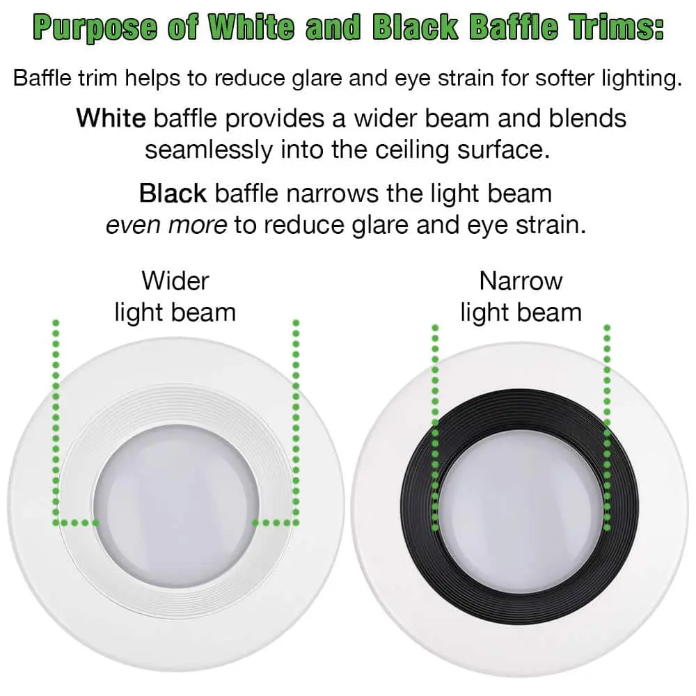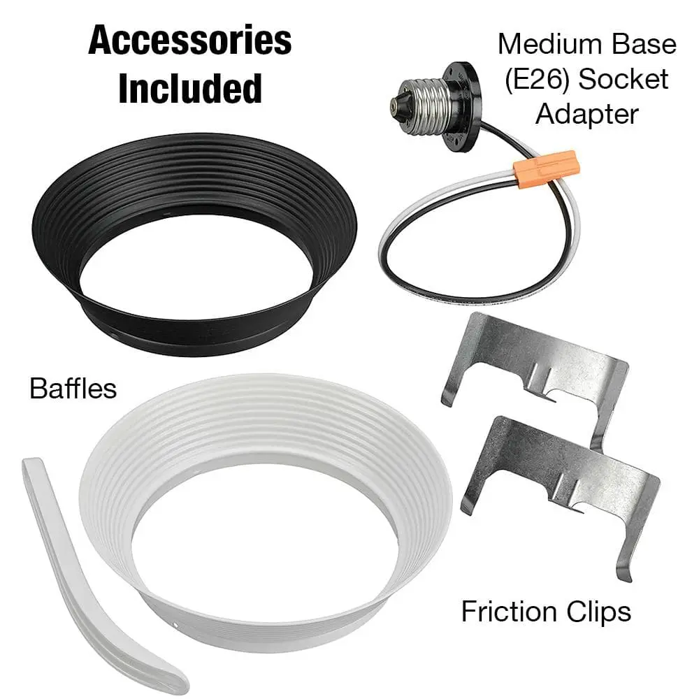 Enhance the ambiance of your home or office with this 6-inch Commercial Electric color-changing LED recessed trim light, offering 30 customizable settings in a single fixture! Tailor your lighting with five white color options, three brightness levels, and interchangeable Black and White baffles to suit your interior style. Ideal for ceilings up to 15 feet, the high brightness setting is perfect for vaulted ceilings, grand entryways, slanted ceilings, large kitchens, and entertainment areas. Crafted from durable all-metal construction, this wet-rated fixture is suitable for both indoor and outdoor use. With a lifespan 50 times longer than incandescent bulbs, it provides maintenance-free operation without the need for bulb replacements.
