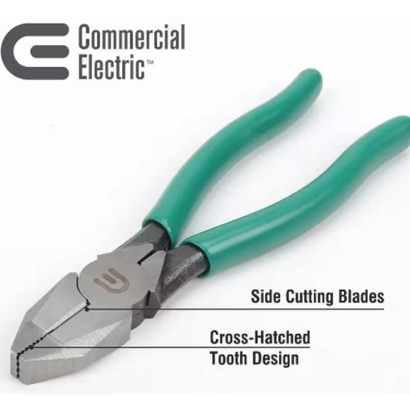 The Commercial Electric 7 in. Wire Cutting Pliers feature sharp, hardened steel cutting edges and ergonomic handles for comfortable use. Ideal for cutting and gripping various wire types, they are durable and suitable for both professional and DIY tasks. Dimensions Handle Length (in.):4.72 in Product Depth (in.):0.59 in Product Height (in.):9.84 in Product Width (in.):3.15 in Details Electrical Tools Features:No Additional Features Features:No Additional Features Hand Tool Type:Linesman Pliers Jaw Capacity (in.):0.31 in Jaw Tip Size (in.):1.26 in Joint Type:Fixed Joint Plier Type:Electrician Tools Product Type:Hand Tool