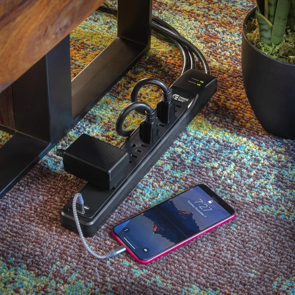 The Surge Protector expands a standard 2-plug grounded wall outlet into 7 surge-protected outlets. It’s designed to accommodate the increasing number of phone chargers and electronics that often crowd typical outlets. This model features 2 USB-A (2.4 Amp) and 1 USB-C (15-Watt non-PD, 18-Watt total) ports, allowing you to charge phones and other devices without using up the primary outlets. The wide-spaced outlet provides room for AC power blocks. With 2100 joules of protection, it’s ideal for safeguarding personal computers, routers, modems, tablet chargers, and other rechargeable electronics.