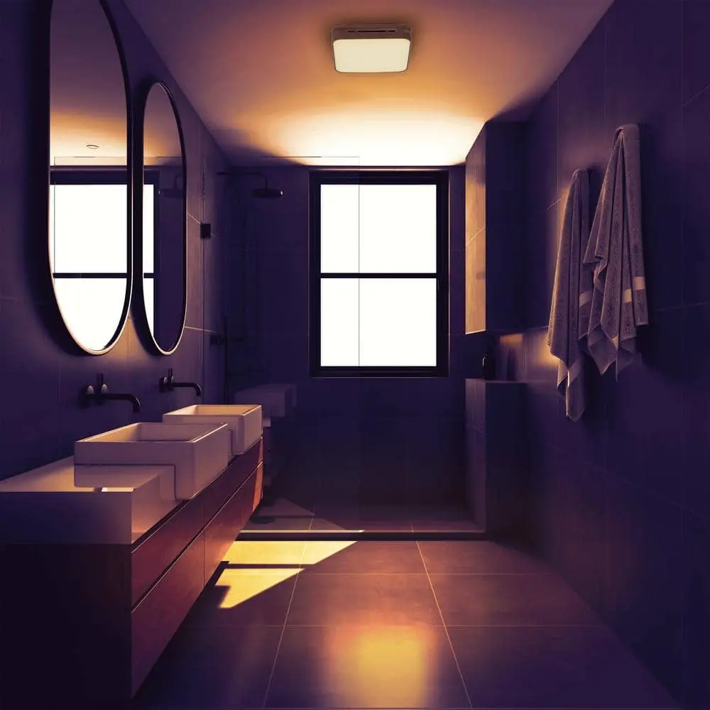 Enhance your bathroom with the Commercial Electric Ultra Quiet Exhaust Fan, designed for both style and performance. Operating at a whisper-quiet sound level of 0.8/1.0 sones, this ENERGY STAR qualified fan offers airflow options of 80 or 110 CFM, making it perfect for medium to large spaces. Its innovative room-side installation design allows for easy setup in areas without attic access, complemented by a secure flex bracket system for reliable mounting. One of its standout features is the customizable color temperature (CCT) technology, enabling you to effortlessly switch between five light optionsfrom Warm White (2700K) to Daylight (5000K)with a simple flip of a switch. Plus, it includes a soothing night light option at 2200K for late-night visits. Upgrade your bathroom experience with this exceptional fan that combines functionality and convenience!